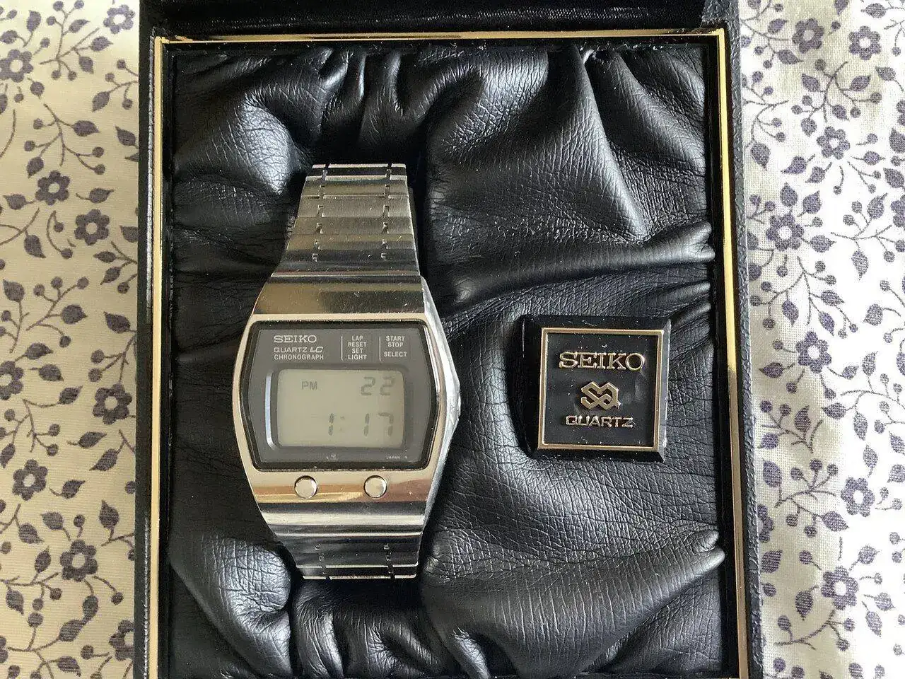 que conseguí que un relojero de UK me dejara en perfecto estado de revista. Yo recordaba que mi padre me había regalado también un Seiko digital, de los primeros que salieron al mercado. Busqué por toda la casa y no pude encontrarlo. Hoy, estaba mi señora organizando cajas y va y me dice: oye en esta caja hay un reloj que debe ser tuyo; voy corriendo y me encuentro con lo que tanto había buscado: esto