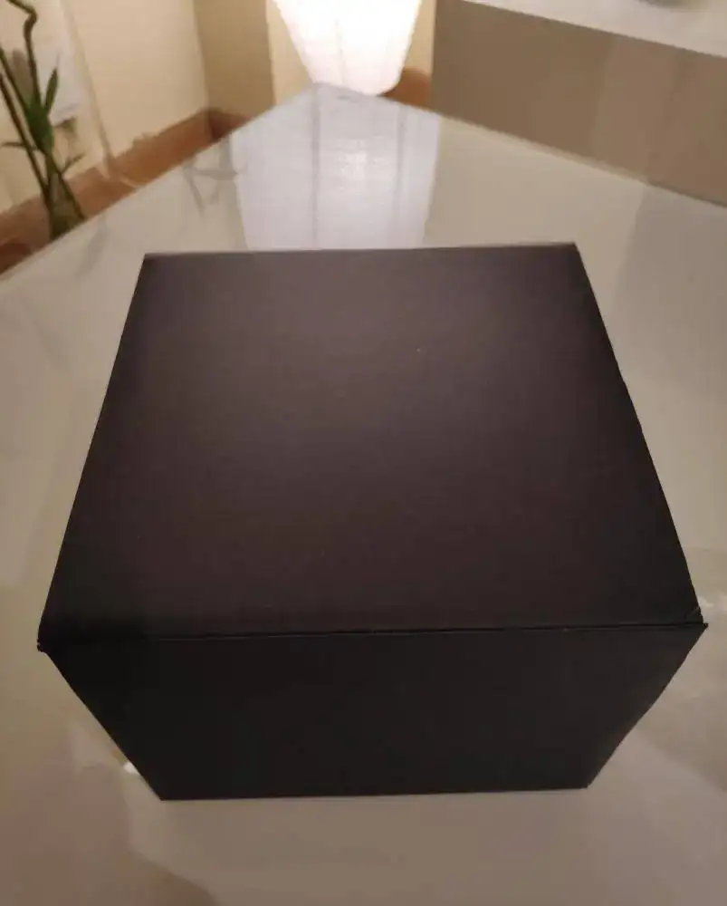 Tras las correspondientes felicitaciones matutinas de mí chica, llegan los regalos y mí amorcito me da dos paquetes (Olé que suerte), me obliga abrir primero uno: una fantástica colonia de Givenchy que siempre he estado tentado de comprarla. Yo súper contento con mí colonia y olvidándome del otro paquete, me dice “abre el otro que te falta”. Era una caja cubica, y yo estaba pensando en un Lego, chuches, una cerveza de edición de coleccionista… pero no, la sorpresa iba ser mayor. Dentro del papel de regalo, había una caja negra