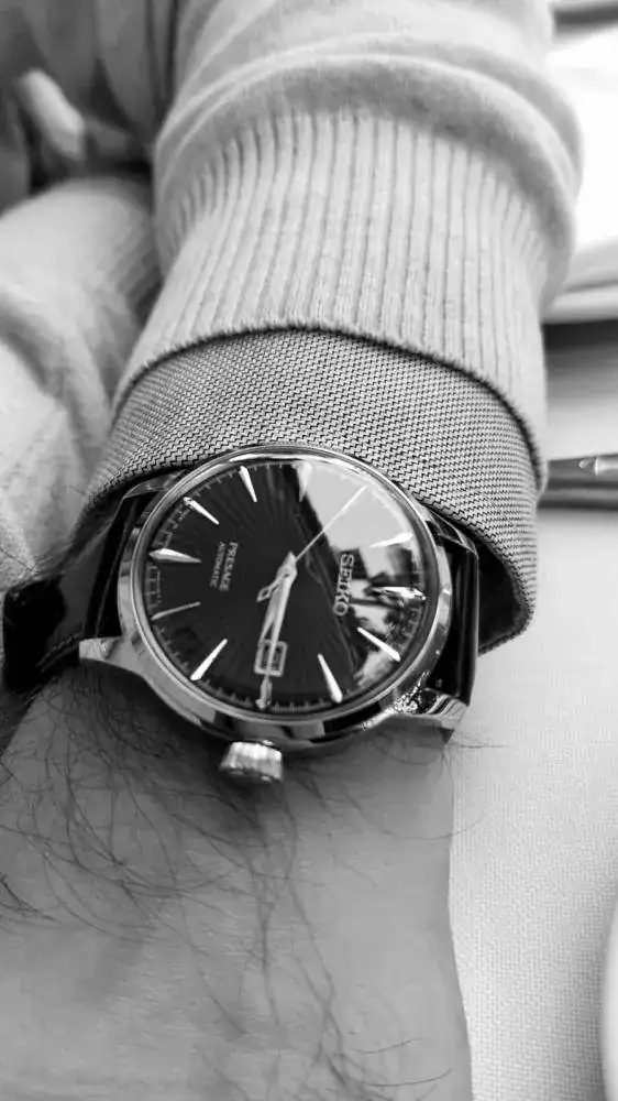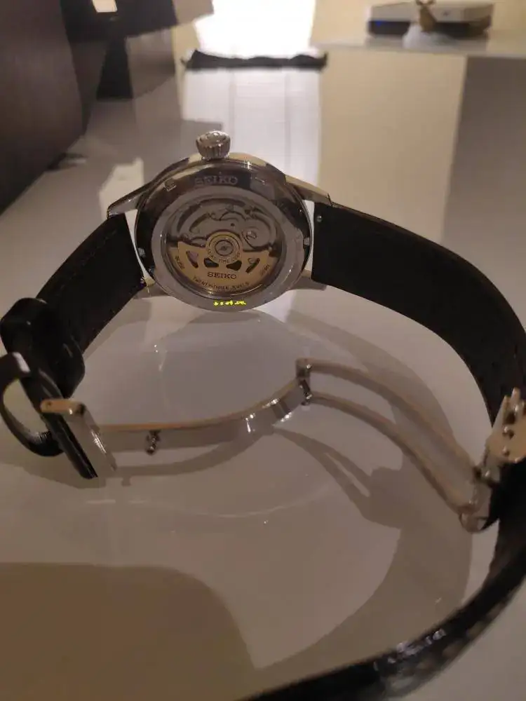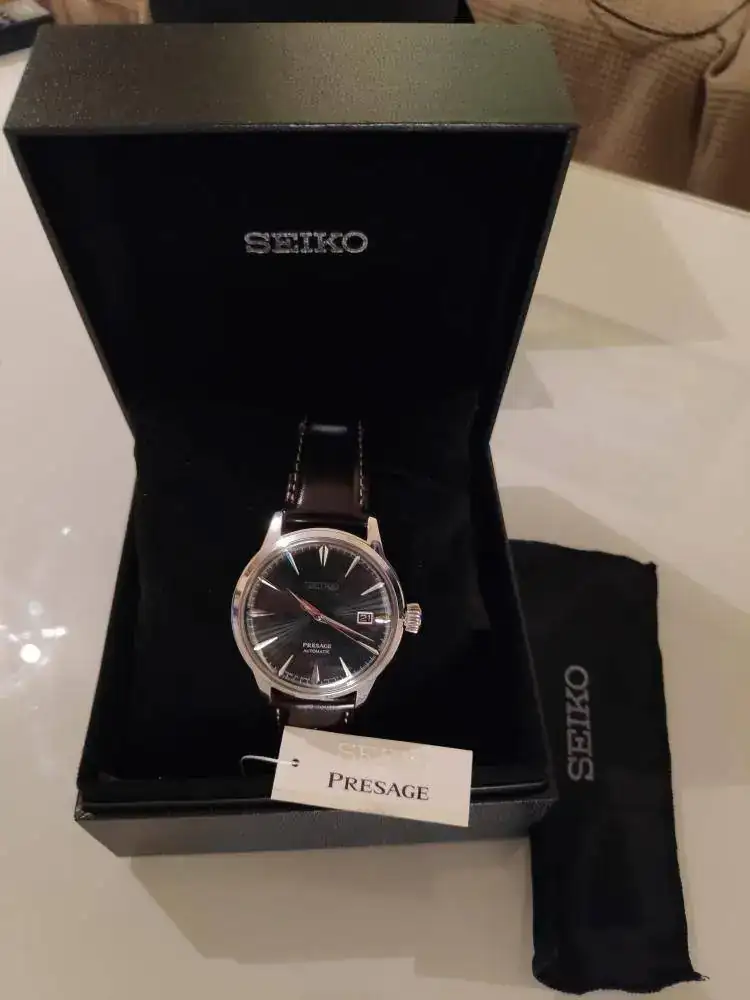 Antes de enseñarlo, citar un par de cosillas: es mí primer Seiko, ya tengo un Orient y un Citizen, con este “cierro” el lado oriental de mí colección. Entiendo perfectamente la devoción que se tiene a la marca, me están dando ganas de empezar a ahorrar para los GS, con eso lo digo todo. Segundo, necesitaba un formal rebelde y este lo cumple de sobra, me encanta. Tercero, es el primer reloj que me regala mi chica, este no va salir nunca de la caja, significa demasiado para mí. Pobrecita mía buscándolo por internet, comparándolo en chrono24, preocupada para que no le diesen gato por liebre, a punto de registrarse aquí en RE…, y cuarto, y relacionado con lo anterior, estoy pasando de Agosto digamos una mala racha (podría ser mucho peor) y para levantarme los ánimos aquí estaba mí media naranja para darme ánimos regalándome algo que me hacía ilusión, y esa es la verdadera suerte que tengo. Una persona fantástica que siempre está a mí lado y me quiere con locura, me encantaría ganar la primitiva, pero con ella he ganado mucho más que en el Euromillón.