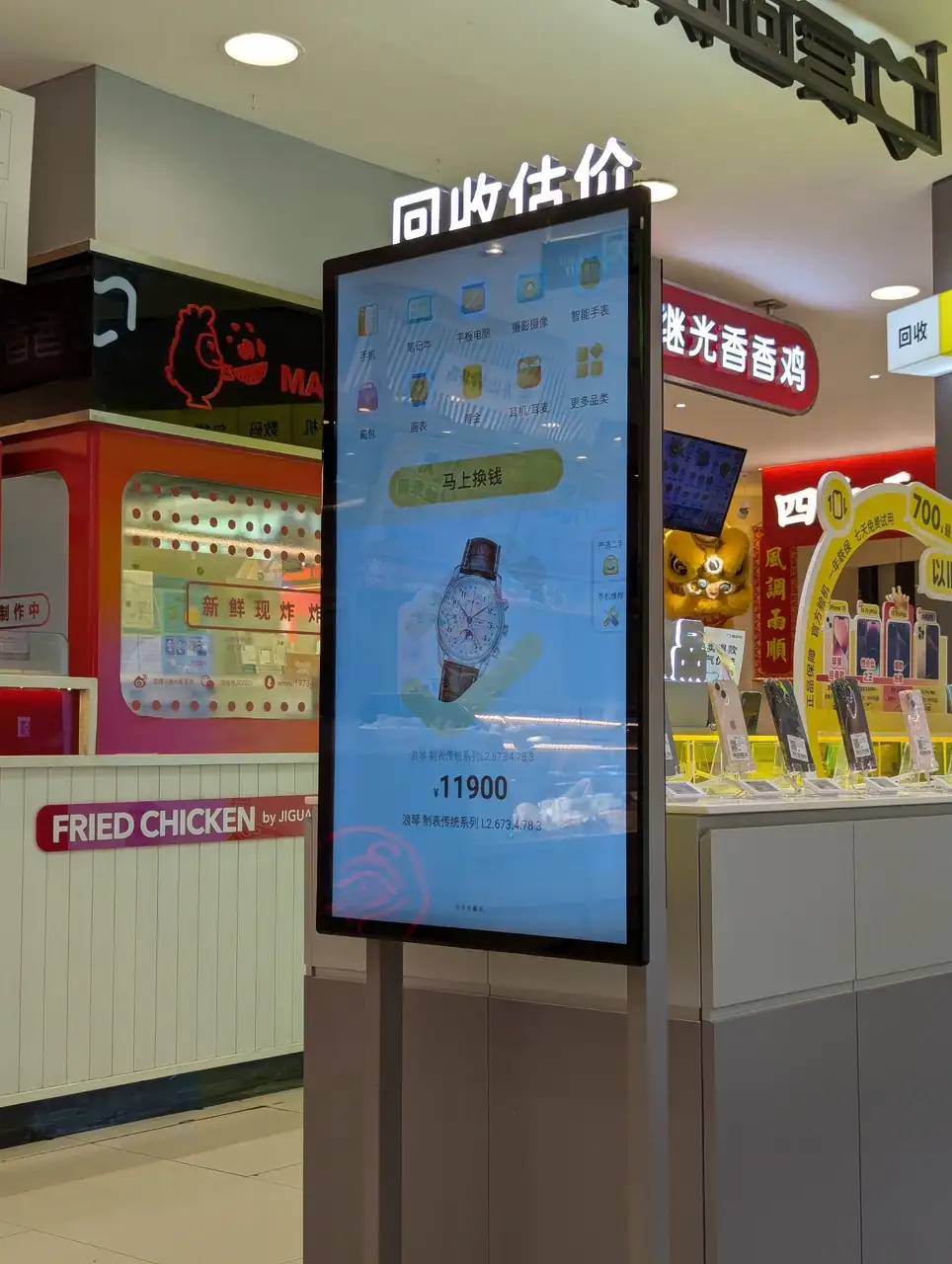 Pues era un stand para venta de segunda mano de productos de lujo. De acuerdo a la información que iban mostrando en la pantalla, una de las últimas transacciones había sido un Longiness Master Collection Moonphase, vendido por un total de 11900RMB. que equivalen a unos 1500€, aproximadamente: