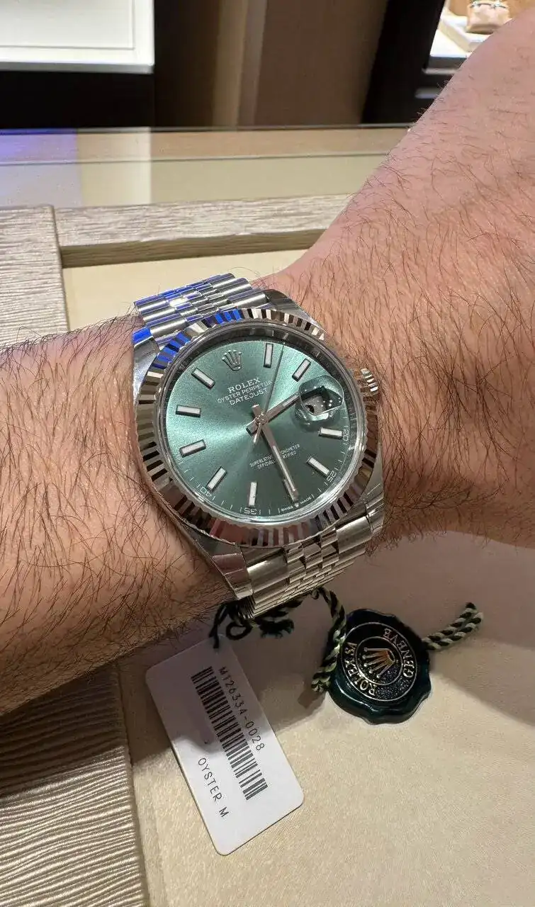 Tal y como está el pato con Rolex, seis meses de espera no es nada.Date just 41mm bisel estriado, jubilee esfera verde menta, los compis me están diciendo más o menos unos 6 meses de espera