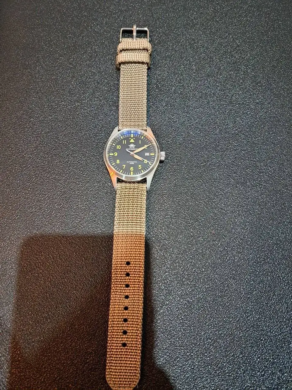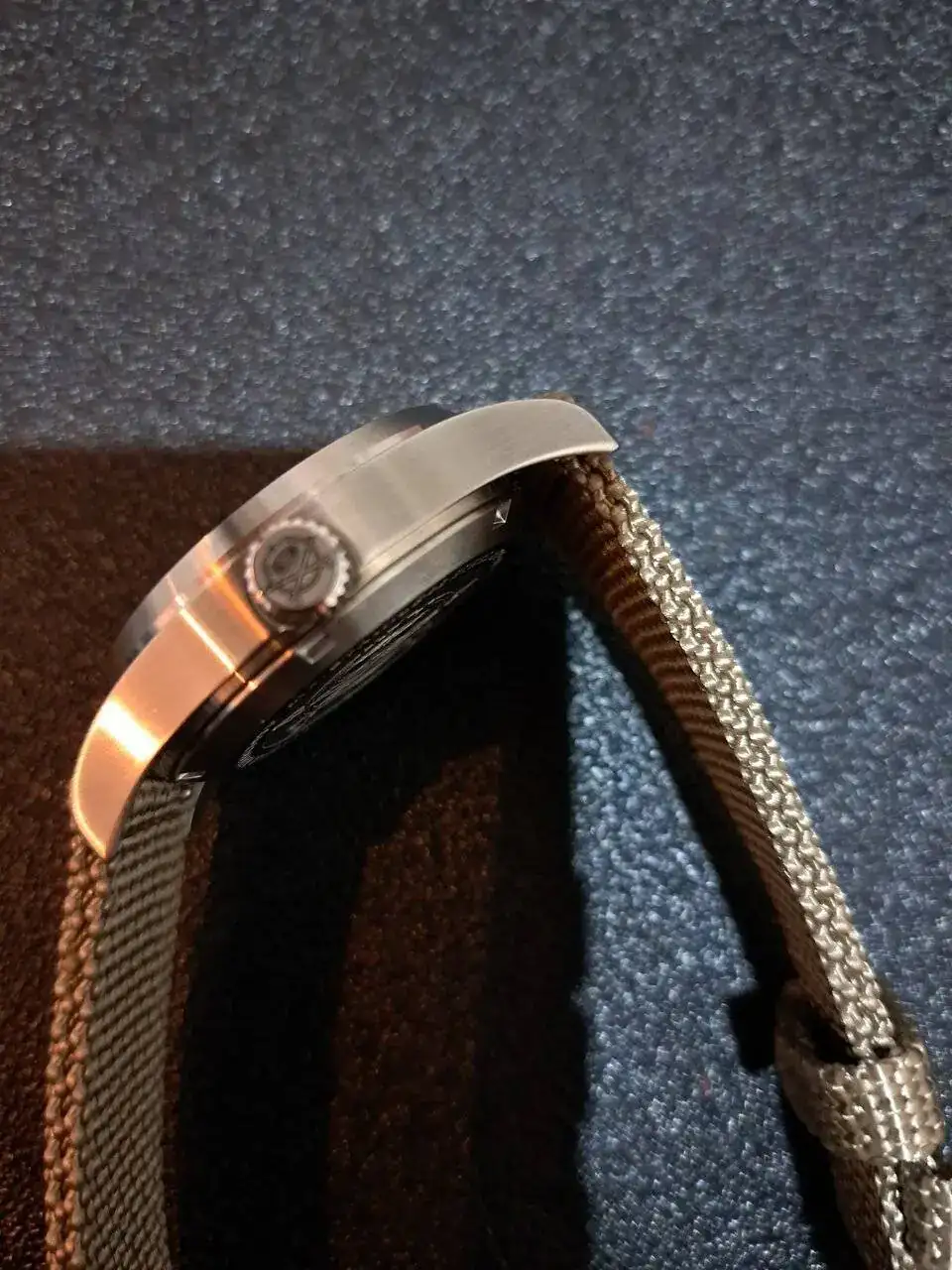Está impoluto, sin una sola marca o pelo. Solo me lo he puesto 1 día pero se me hace muy pequeño en mi muñeca, soy de relojes grandes. Le he estado observando y tiene una marcha fantástica. Ahora unas malas fotos