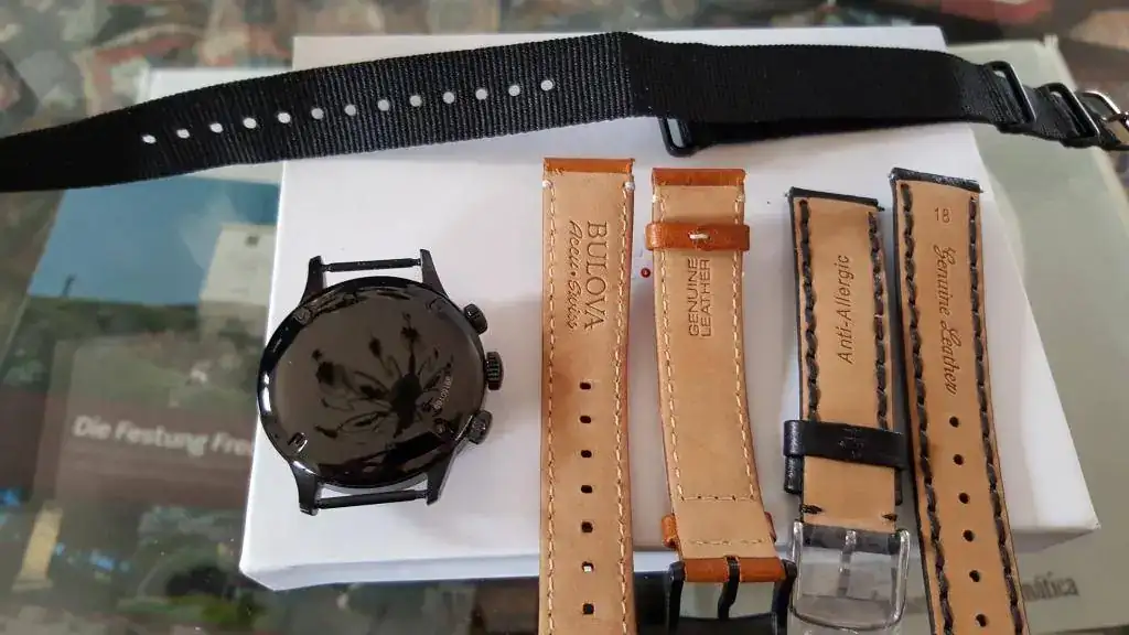 Correa nato nylon con acabados negros, piel marron bulova y negra de piel