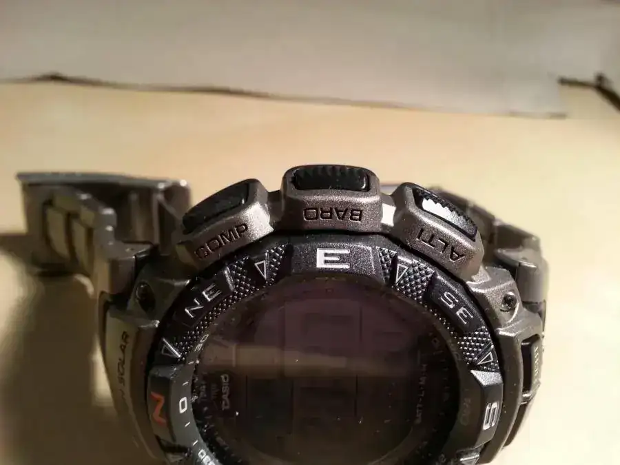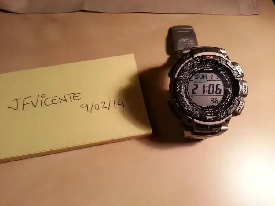 Después de un gran periodo de inactividad por "motivos" laborales me reintegro al foro y pongo en venta uno de mi relojes por no usarlo. Me da pena tenerlo al sol para que no pierda carga y prefiero que alguien le dé otra oportunidad. Lo compré en el foro con idea de usarlo pero la final me lo he puesto un par de veces por lo que está en muy buen estado por su uso moderado. Es un casio PRG240T (altímetro, barómetro, brújula, 5 alarmas y un sin fin más de prestaciones). Está con su caja y toda su documentación. tiene alguna micro raya en el cierre pero poco importante (creo yo). Le pongo un precio de 115€ y el envío por parte del comprador. Si no estás satisfecho ...el sistema cabanillas.
