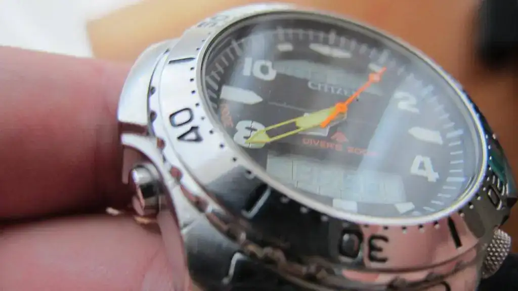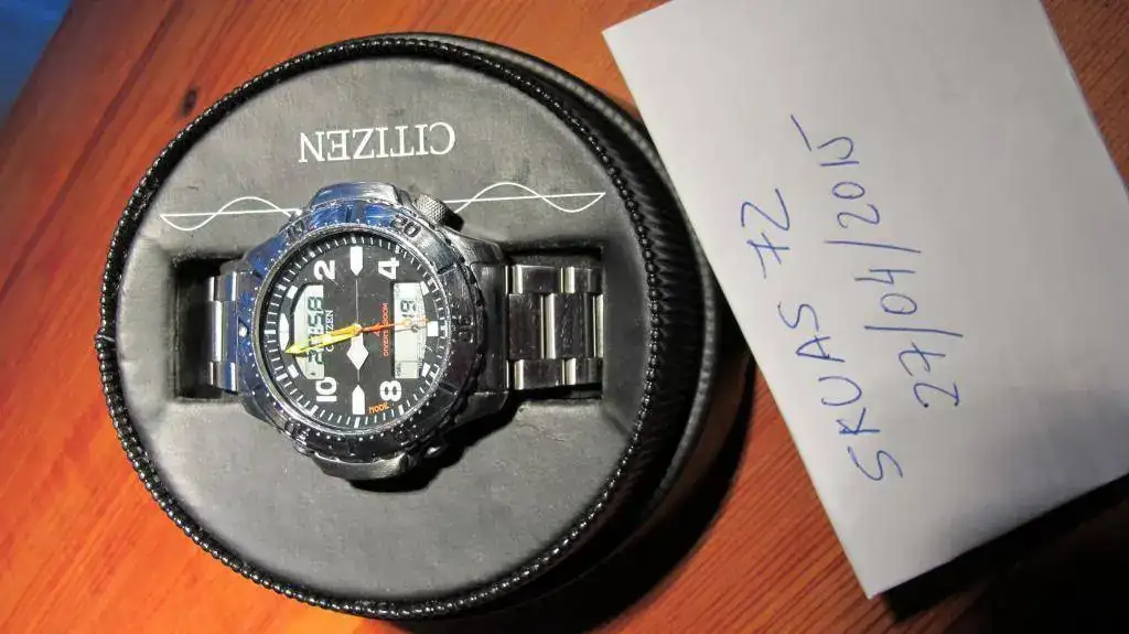 Vendo mi citizen aquamount, he sido su unico dueño desde que lo compre en el 2011. El reloj esta en un estupendo estado aunque tiene signos de uso, los mas destacables son los siguientes: