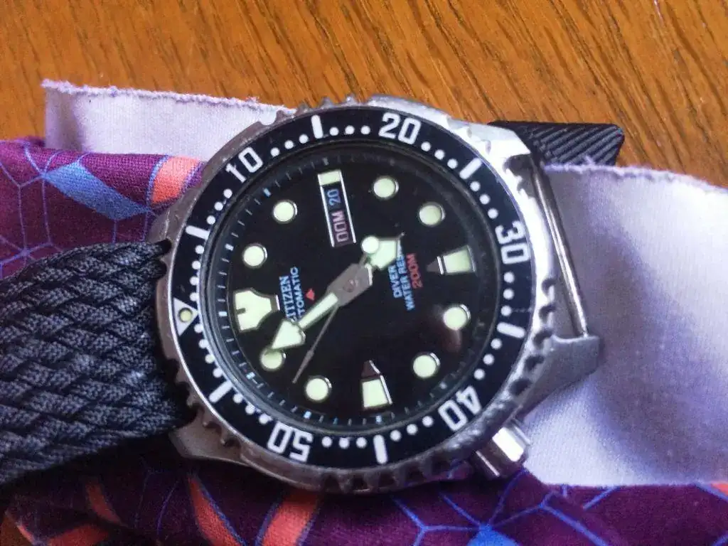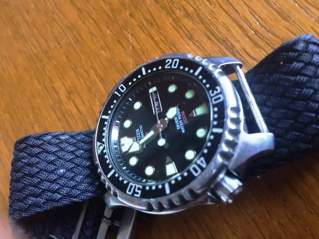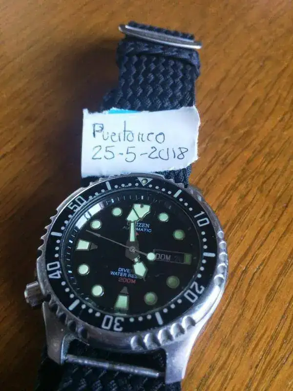 ), recien revisado, con cambios de juntas y hermetismo hecho, con dos cauchos (uno original, el otro creo que no), mas un armis jubile genericoNo le veo marcas en el bisel ni en el cristal