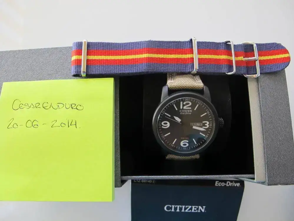 Hola a todos. Pues vendo este reloj económico que compre para regalar y que no gustó. Desde que lo compré ha estado en la caja, el estado es 10 de 10, yo no le he visto nada de nada, tiene aun la pegatina transparente en la trasera y por eso no he hecho fotos ya que esta inmaculado. El caso es que yo no lo voy a usar y prefiero que lo use otro forero. Tiene caja e instrucciones y estoy buscando la tarjeta de garantía que no encuentro pero en cuanto aparezca se la envío al comprador.