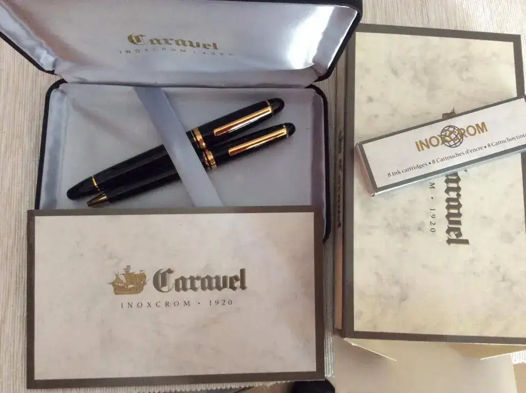 Vendo pluma y boligrafo de Inoxcrom Caravel, la gruesa, la de cierre a rosca. El conjunto está totalmente nuevo, lleva en mi poder un montón de años, y al disponer de otra que uso, este no se ha usado.