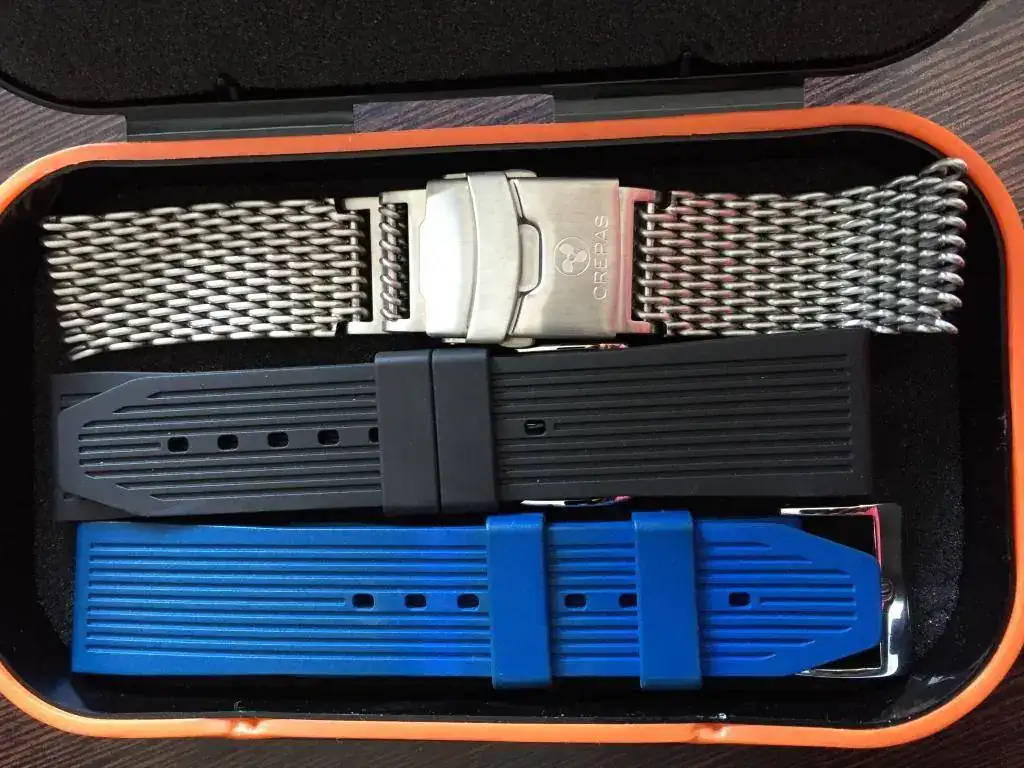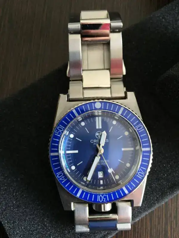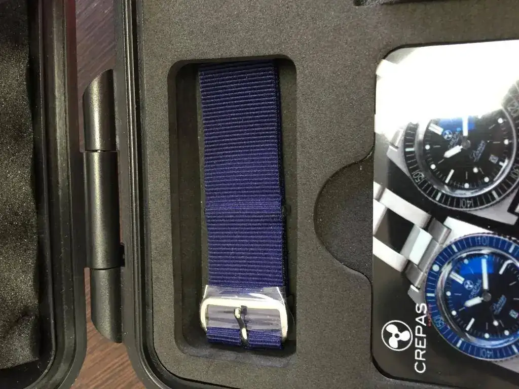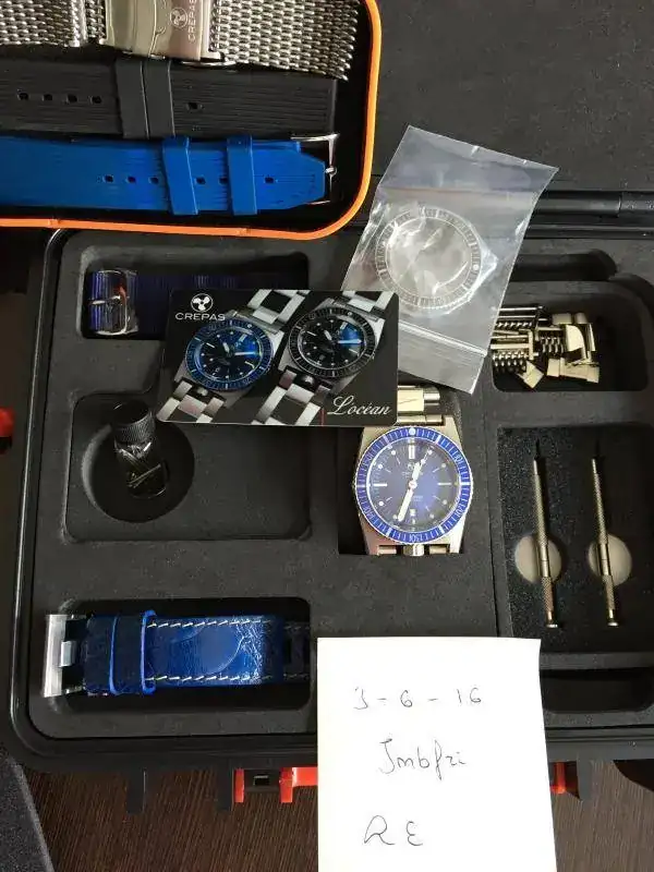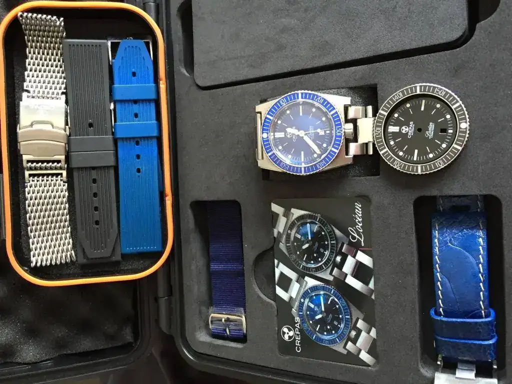 Buenos días, saco a la venta este espectacular Crepas L'ocean en muy buen estado y con todos los extras que se ven en las imágenes: armis, milanesa, caucho azul, caucho negro, nylon, piel de tiburon (muy muy bonita), dial negro y corona negro (por si te apetece cambiar de azul a negro). Son dos relojes en uno y todo bajo la calidad de Crepas. Cualquier duda por privado, gracias