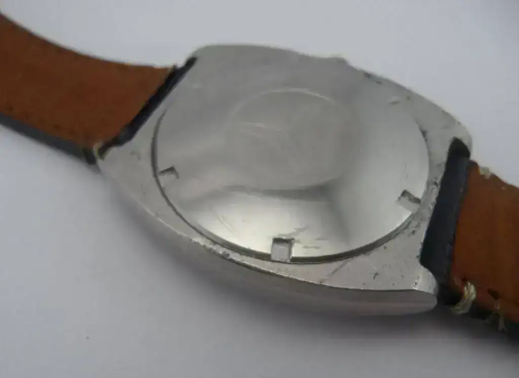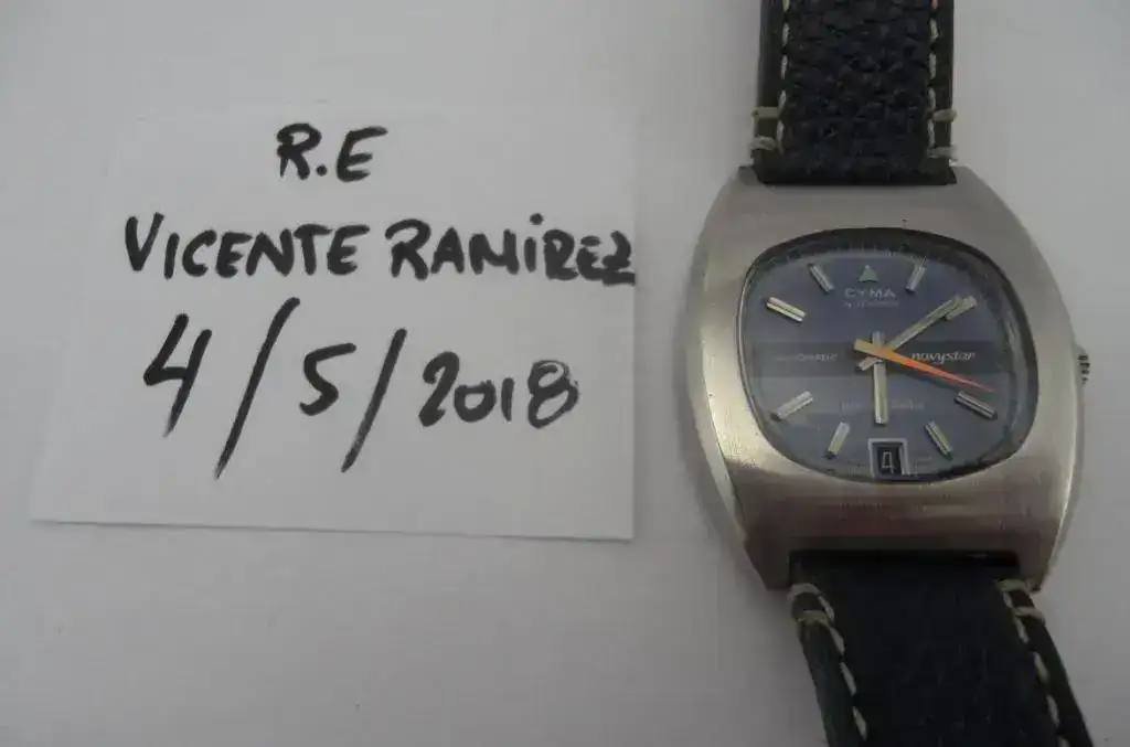 La tapa trasera es original y está grabada con el símbolo de Cyma By Synchron, y tienes las típicas rayas de haber sido abierto por manos poco cuidadosas.