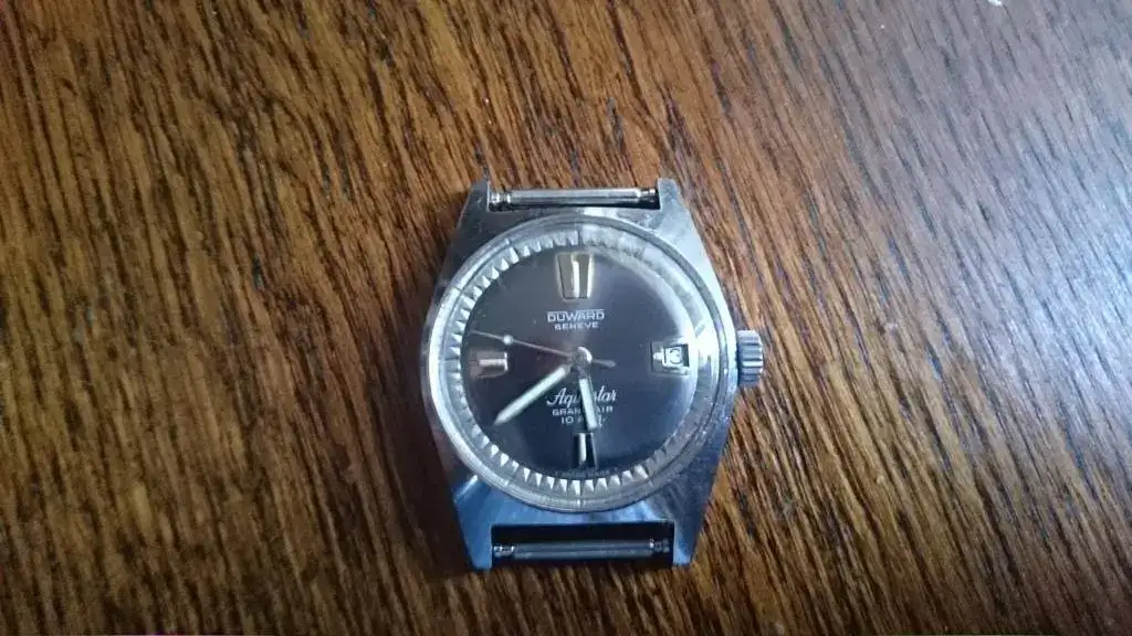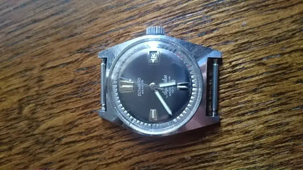 Se vende Duward Aquastar modelo Gran Air...Estado muy bueno..plexy nuevo..El color de la esfera es marrón y morada segun le de la luz...alguna rayita en la trasera...corona original...muy suave al darle cuerda y poner en hora...