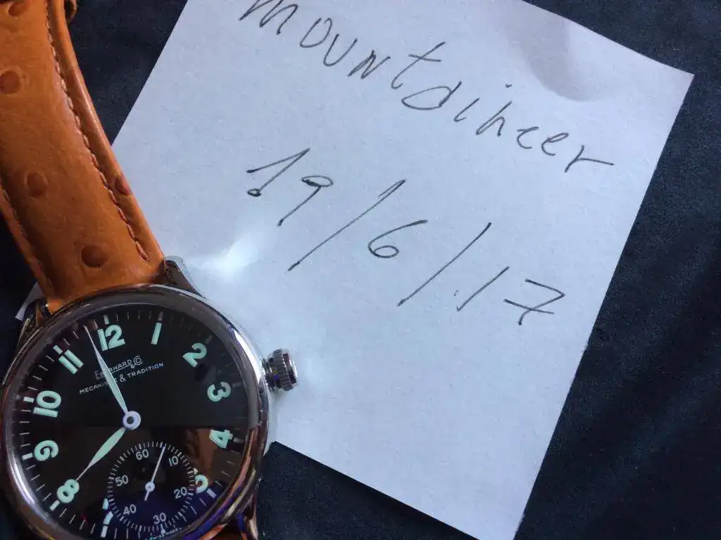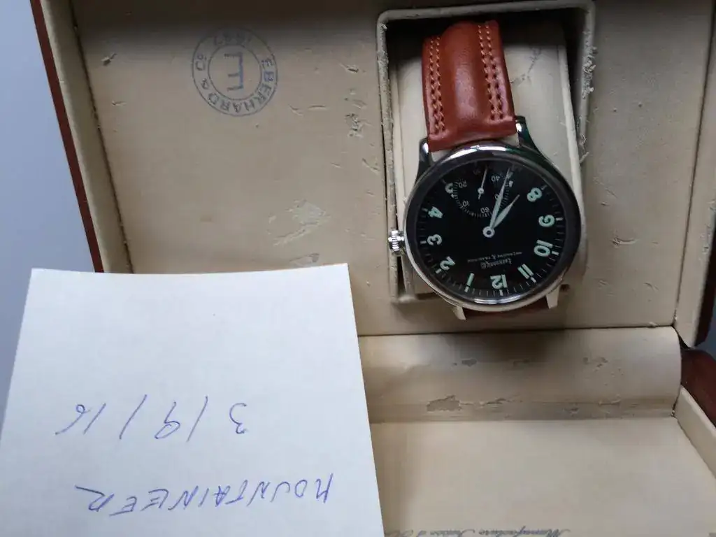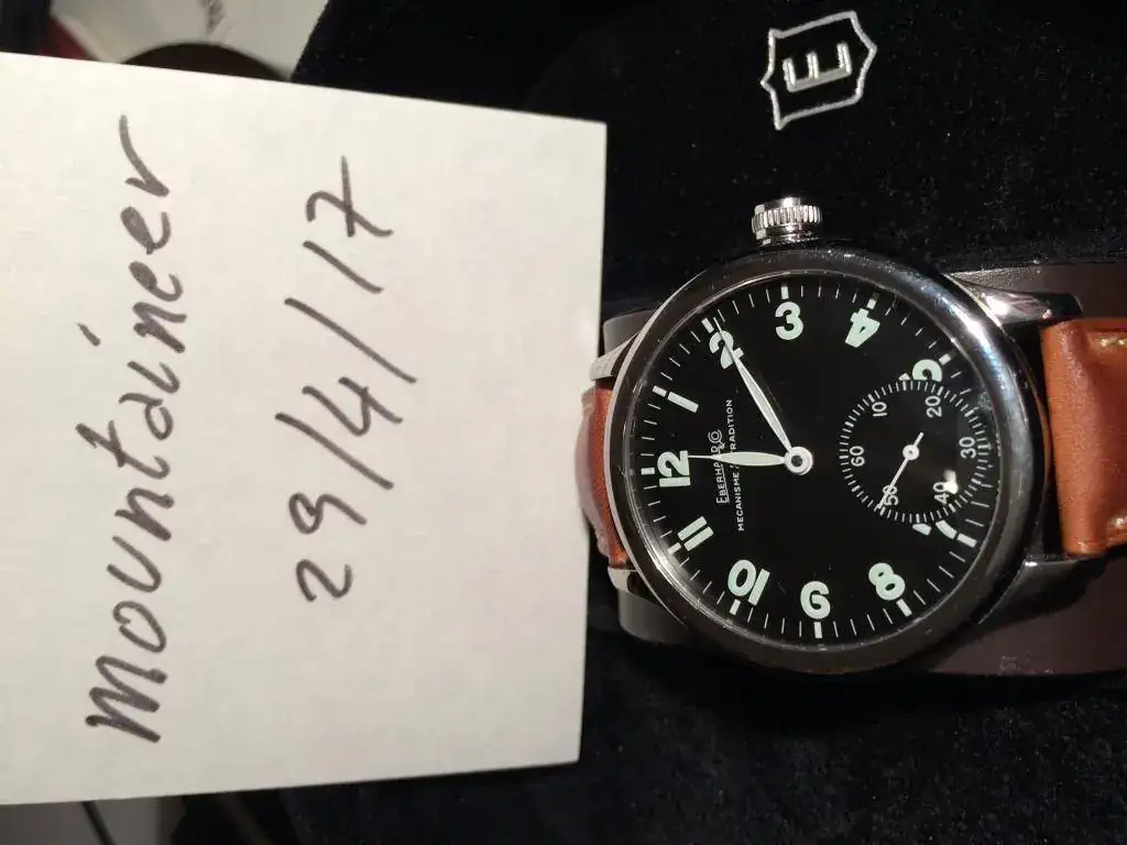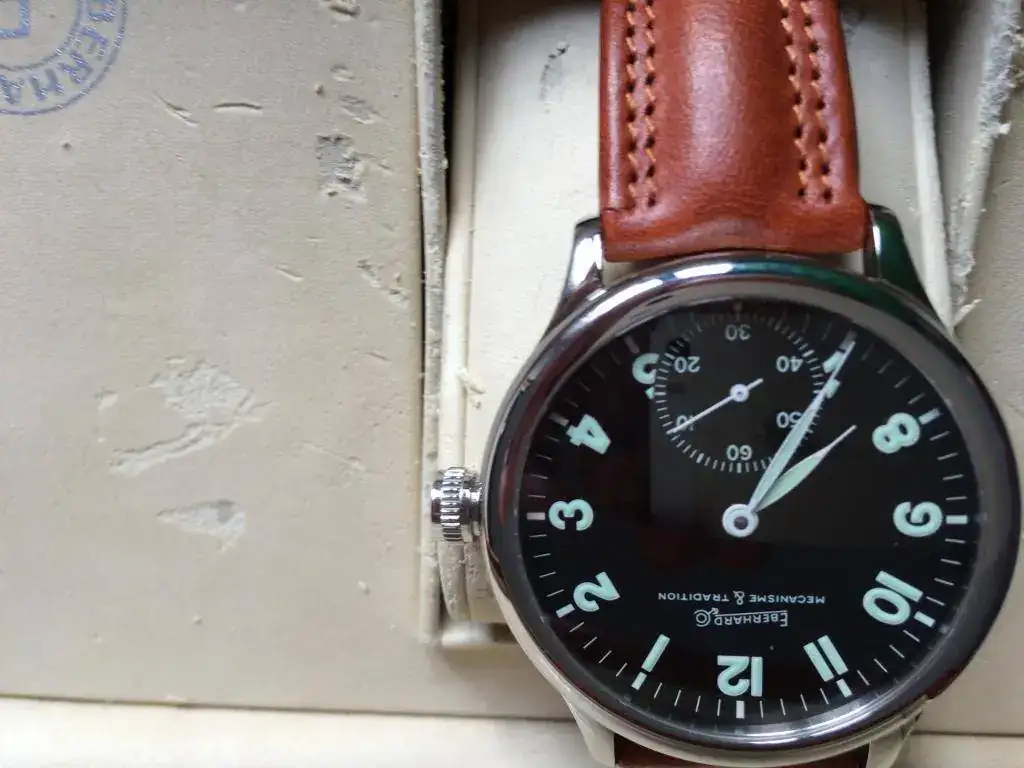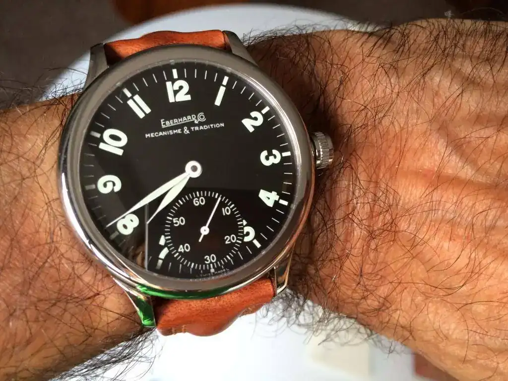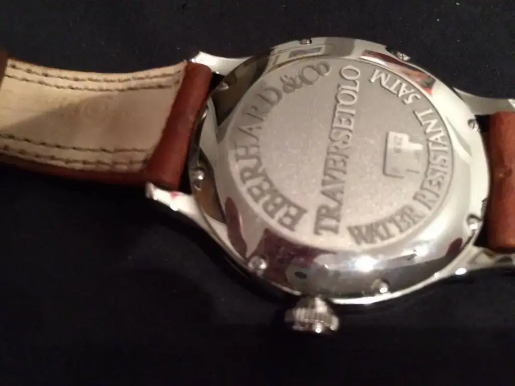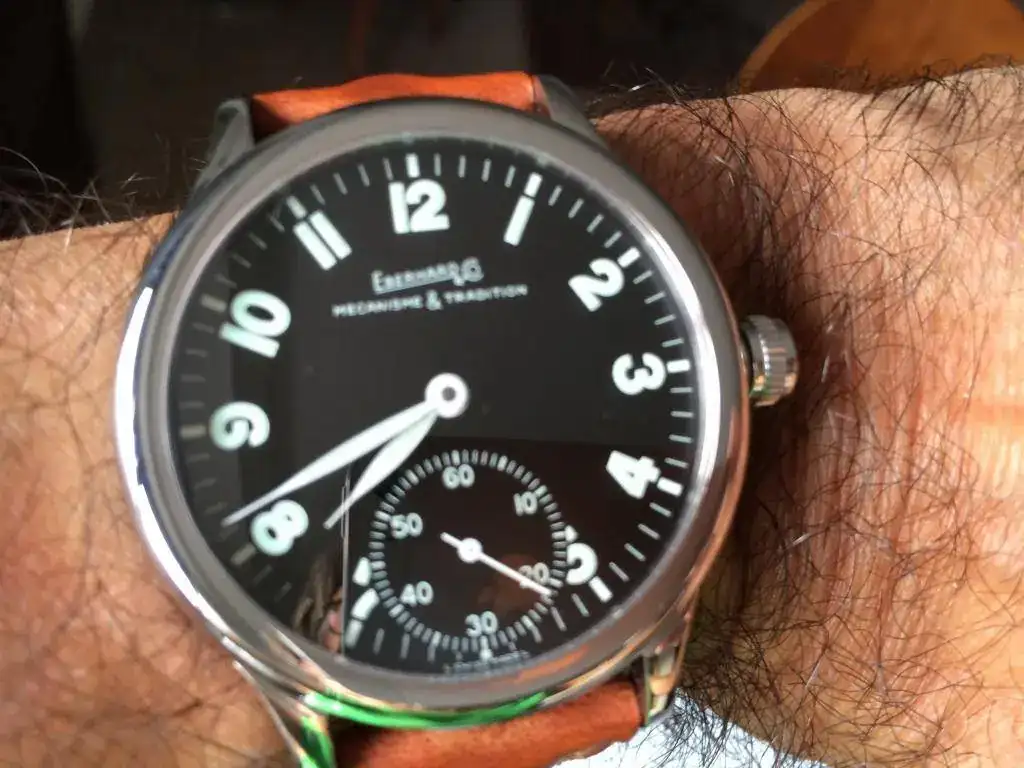 Hola, vendo este reloj mecánico manual Traversetolo de la casa Eberhard, esfera negra y 43 mm de diámetro, comprado en enero de este año. Estado impecable, marcha muy buena, sólo mencionar algo de deterioro en la caja de madera y algunos agujeros hechos por mí en la correa; añado una nueva de cortesía. El precio es de 1.100 euros, no cambios, contactos por privados o WhatsApp al 63nueve961642.