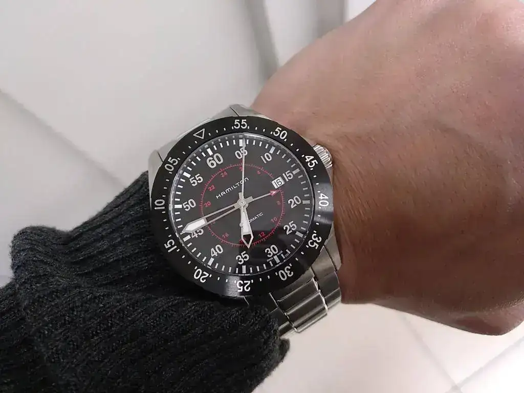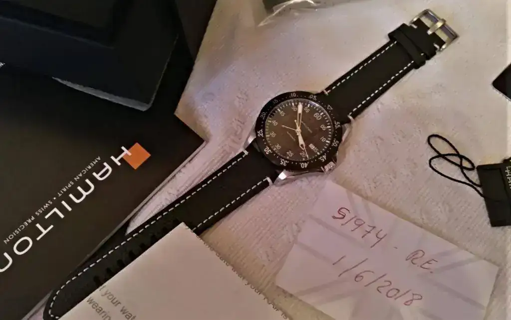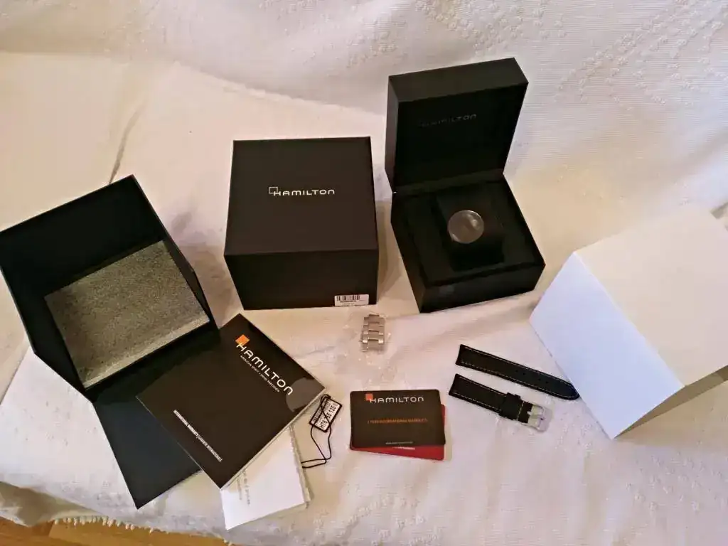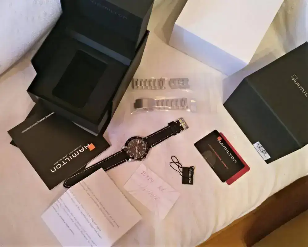 Vendo este reloj que ya ha estado en el foro, se trata de un Hamilton khaki Aviaton GMT, caja de acero, cristal de zafiro con anti reflejos, caja de 44mm , Armis de 22 mm de acero bitono con cierre deployante macizo, mas correa de piel negra nueva con pespunte blanco (Una marrón le quedaría expectacular), eslabones extra, maquinaría con doble uso horario, bisel bi-direccional pvd, admite carga manual y parada de segundero, estuche y documentación, resistente al agua 10 bar, agujas y marcadores luminiscentes, PVP 1145 euros, dotación completa, Acepto reloj de calidad como parte de pago, o cambio por reloj de similar valor tipo dress, clásico vamos, solo automáticos, no vintage.