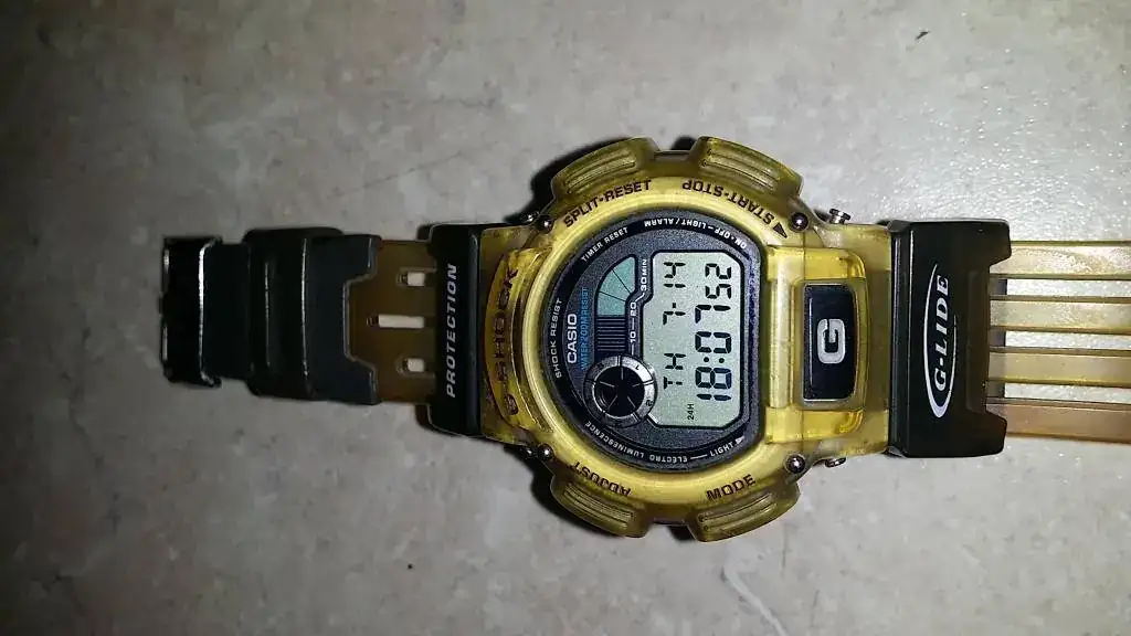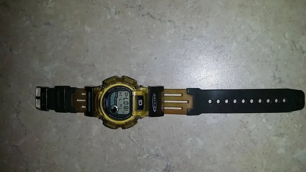 Vendo G Shock DW-9000 .EL reloj tiene muchos años pero se conserva en buen estado ,es un icono de Casio y es el reloj que usaba la marina francesa en su momento ,es muy diferente a los demas por sus lineas de trasparencia ,como destaco es un reloj que se nota el paso de los años en el ,conserva todo lo original la pulsera en algun punto tiene alguna rajita que se muestra en las fotos ,pero que se puede usar y una vez puesto casi no se aprecia.Destaco que no tiene el hermetismo y fui yo el que le cambio la pila y desde entonces no emite sonido alguno ,pero todas las demas funciones van perfectas, debido a todo ello le pongo un precio de 35 euros para un pedazo de historia a demas regalo un casio f91w 1dg este ultimo esta nuevo eso si adelanta muchisimo osea q para piezas o para que algun manitas lo mire.