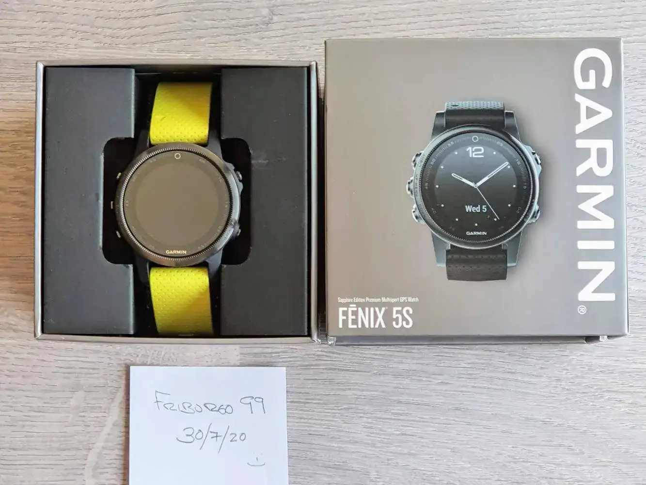 Nota adicional: el reloj, su esfera, su caja, el cristal no presentan desperfectos. Ni golpes ni microgolpes. El brazalete original Garmin color negro se nota usado, pero está muy buenas condiciones y en buen estado de uso; los 3 restantes se presentan como nuevos.