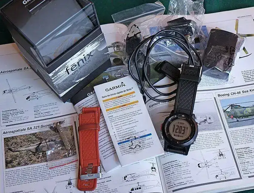 Es una de las mejores herramientas de RelojGPS de muñeca que hay en este momento en el mercado. Está todo el kit completo -como se puede ver en las imágenes- además de una segunda correa de color naranja (con un uso mediano).
