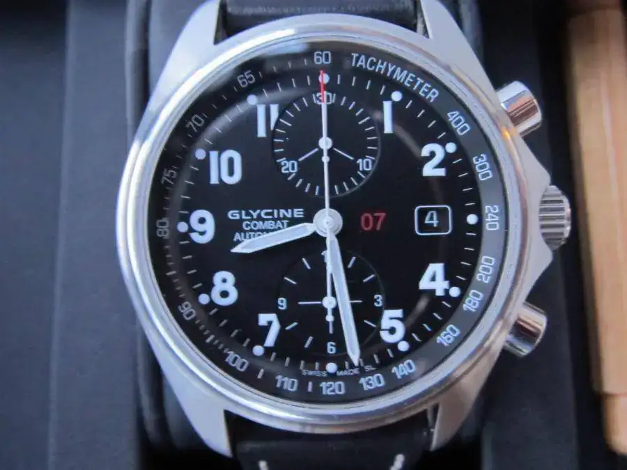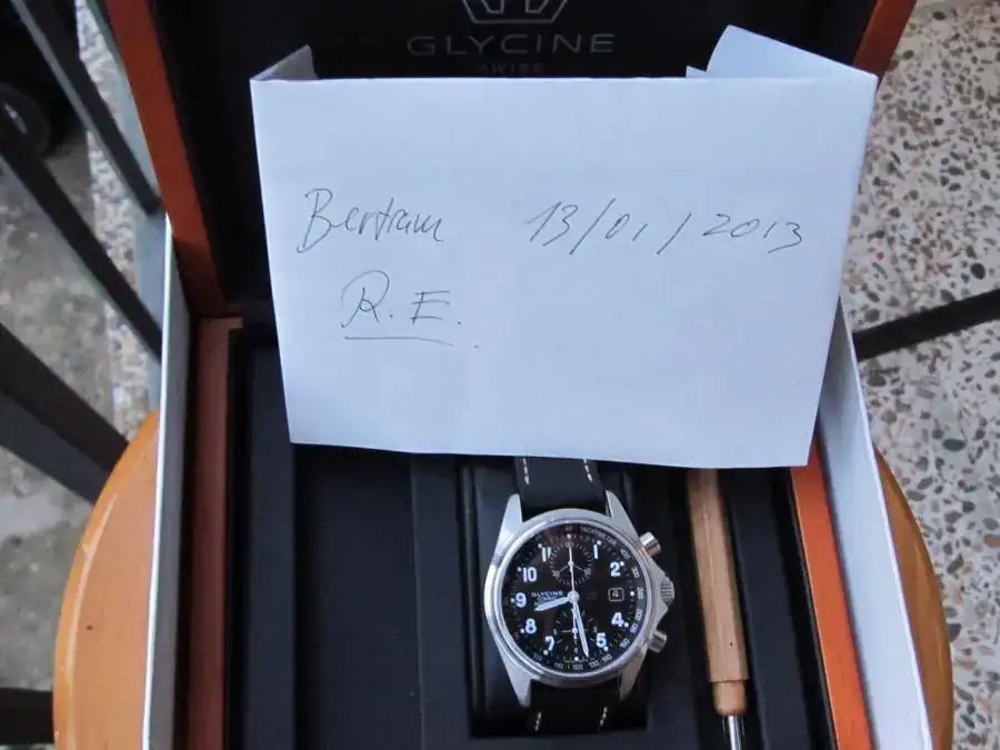 Debido al escaso uso que le doy y a las ganas que tengo de cambiar un poco, me he decidido a poner en venta este bonito Glycine. Va completo con Documentación, caja espectacular de madera y herramienta de cambio de correas, la correa que lleva actualmente es una Glycine original, se adjunta una segunda hebilla original.