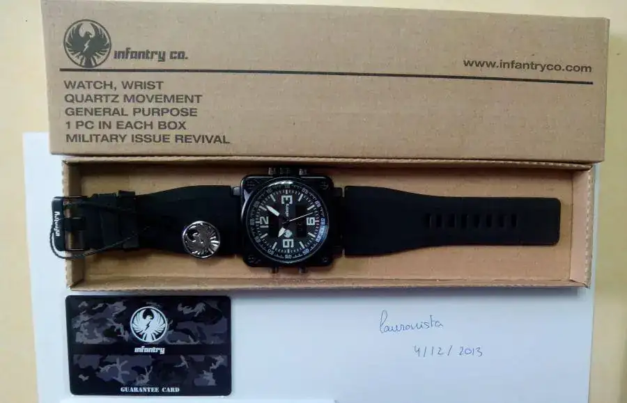 Pido perdón al administrador y a los compañeros, le he dado a enviar y estaba incompleto. El infantry negro es el que vendo. Su precio 25 euros envío incluido por correos certificado. Los dos relojes son nuevos a estrenar y vienen en su caja con documentación y todo. El otro lo regalo. pago por transferencia.