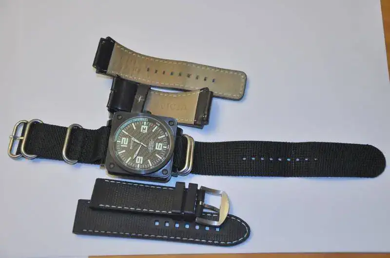 Vendo (con todo el dolor de mi corazón, porque sé que me arrepentiré), mi Invicta Corduba 3966 Automatic, un reloj contundente donde los haya, a las fotos me remito. Es un 50mm hasta la corona, que viene con la cruz de Invicta. Lo vendo con tres correas, la original de cuero (que he usado muy poco), y que parece sacada de un chaleco antibalas, más una de silicona que le queda estupenda, y mi favorita, una nato de 5 anillos "gruesa", acorde con el tamaño del reloj. Es una máquina excelente, y con buen lumen, la esfera de fibra de carbono, el lateral firmado con la marca, y sumergible a 200mts, la trasera vista, y la correa de cuero lleva un curioso y útil sistema de cambio rápido, además está en un estado estupendo, ya que lo he usado poquísimo. El reloj va sin caja, pero bien protegido. El precio que le pongo a esta preciosidad es de 150€ incluyendo el envío. Por cierto, este movimiento admite remonte manual.