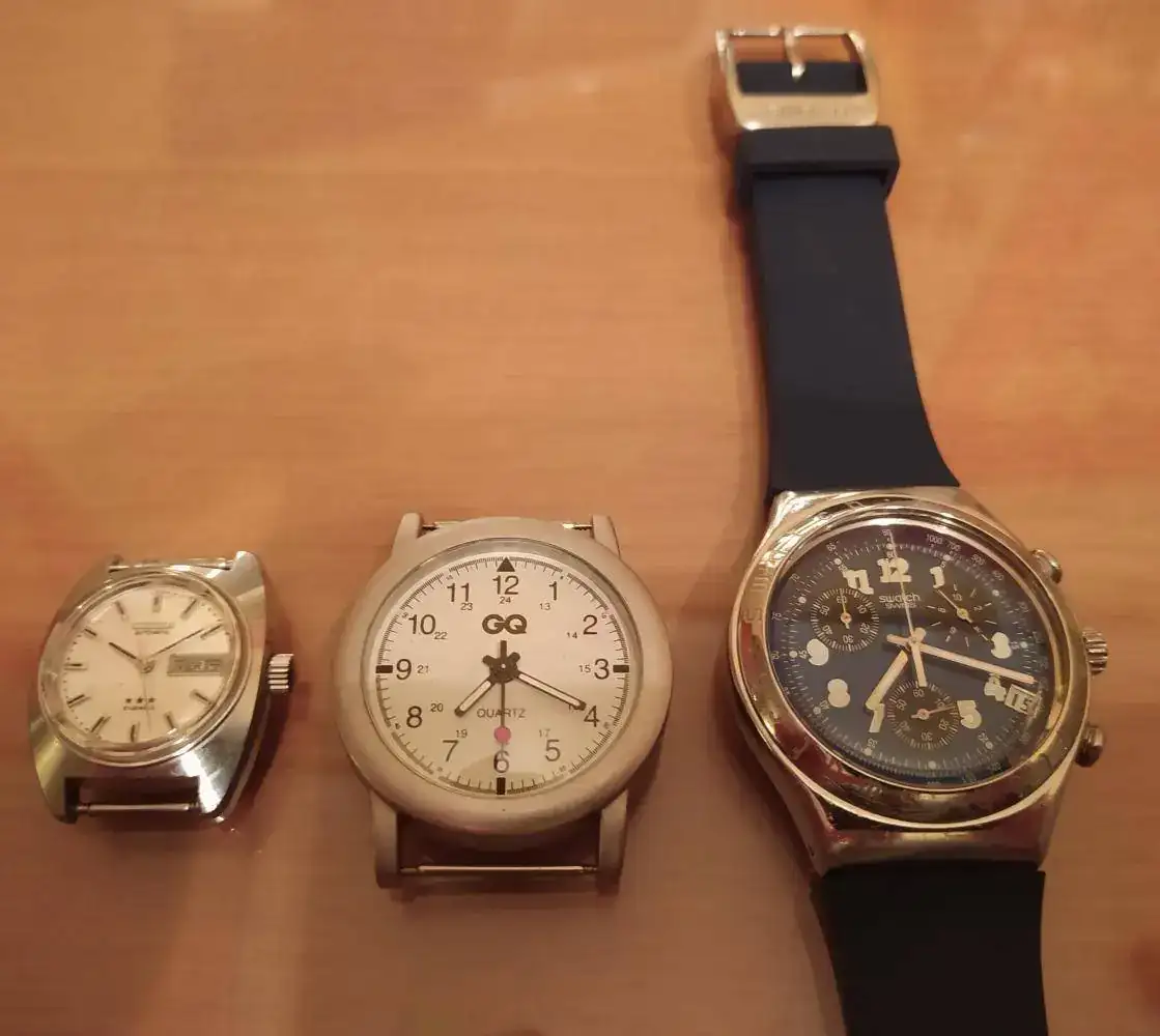 Movimiento: cuarzo el Swatch es una eta los demás cuarzos no se y el automático 21 rubíes es japones