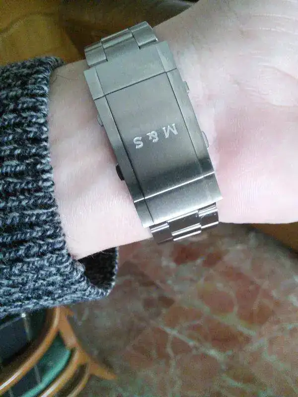 El reloj está perfecto, no tiene marcas, y curiosamente tampoco tiene pelos del uso, no se si es que es un acero muy resistente, pero yo no lo aprecio a simple vista. Solo hay una marca en el cierre del armis, un pequeño arañazo, aunque es el único, porque no lo he usado nada mas que unos días al principio, luego le puse una correa.