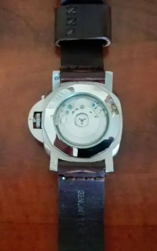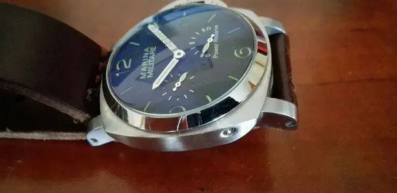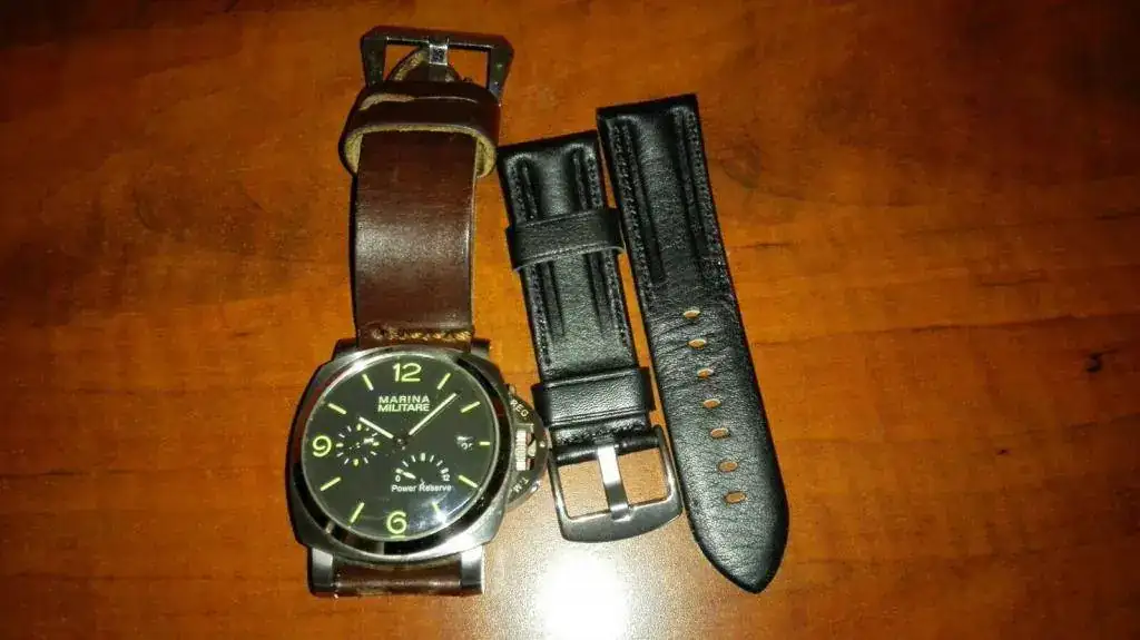 Vendo este Marina Militare adquirido en noviembre de 2013, he sido el único propietario. El reloj presenta marcas de uso visibles en el bisel de espejo –en la última fotografía presento un detalle aumentado-, así como un pequeño arañazo en el cristal, muy fino, a la altura de la una. En cuanto a su marcha, las veces que lo he probado, siempre me ha sorprendido lo bien ajustado que va, el indicador de reserva de marcha funciona perfectamente. Junto con la correa marrón de cuero grueso que lleva puesta; incluyo la correa negra servida con el reloj, sin estrenar; la primera de una notable calidad superior con respecto a la segunda.