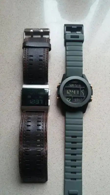 Regalo Quiksilver Random, un reloj con mucha presencia y cuya correa de cuero ya es una maravilla. El motivo del regalo es que el cristal del Quiksilver tiene un picotazo y algún arañazo.