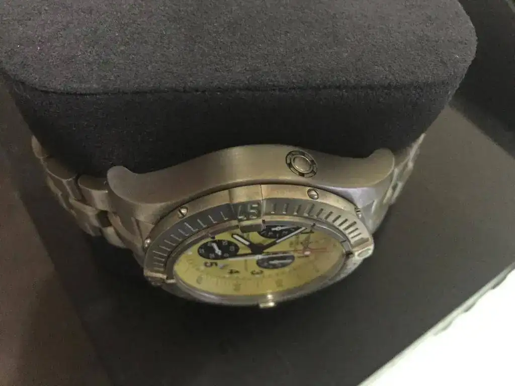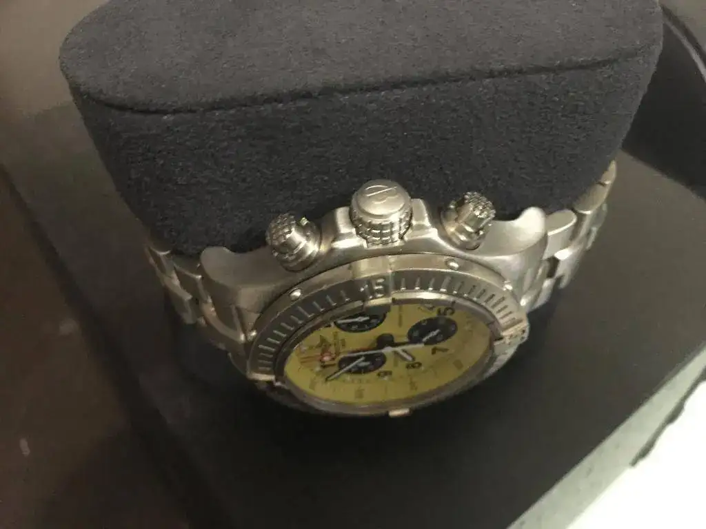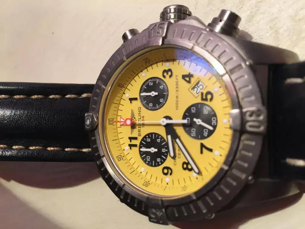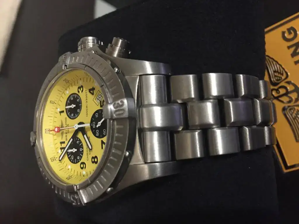 Pongo fotos para que se vea bien, tiene alguna marca, pero esta recién pasada la revisión en servicio oficial Breitling Madrid, calle cabanilles. Con un gran descuento en el servicio al ser un cliente conocido. Incluyo la factura.