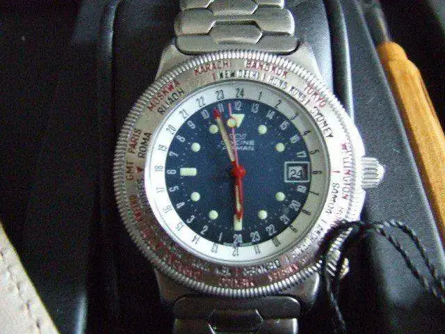 Saco a la venta este Glycine en muy buen estado, tiene ligeras marcas de uso pero ni golpes ni arañazos. La caja blanca de cartón y la herramienta por uno de sus lados que está rota es lo unico. Por lo demas viene con toda su documentación aunque la garantia está ya caducada, fué comprado en 2009 y llevaba un par de años en su caja. La pila se la pondré nueva antes de realizar el envio.