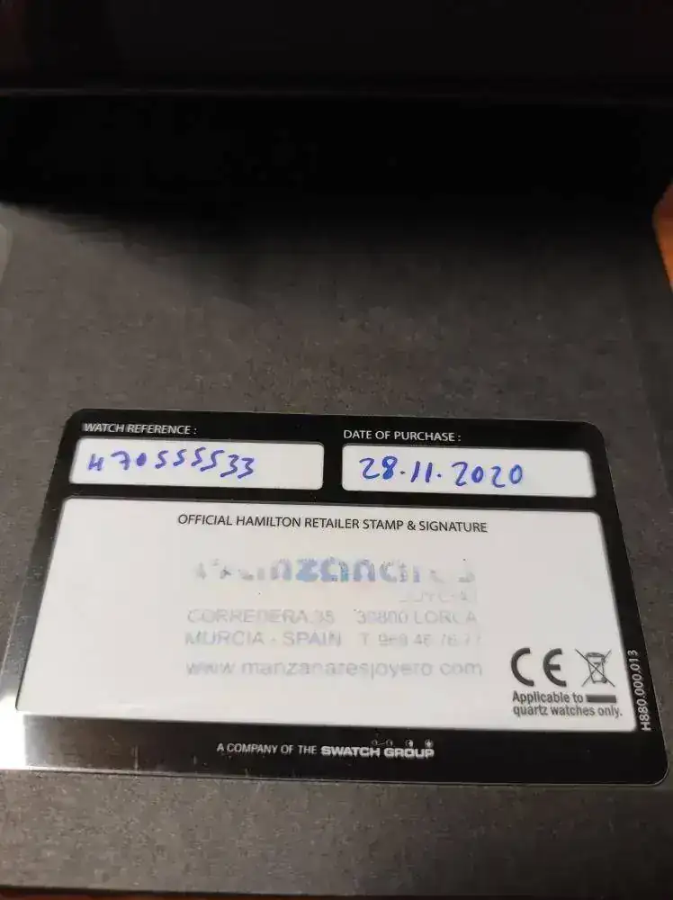 Saludos. Vendo o cambio este recién llegado y ya descatalogado Khaki Field de 42mm y calibre 2824-2. El reloj es nuevo, solo comprobado exactitud y buen funcionamiento. Comprado en tienda nacional, por todos conocida. Completo, con sus papeles, cajas y garantía a estrenar, como quien dice. Para cambio, reloj similar o parecido, con eta 28.800vph, nada de Powermatic, por favor, y que esté tan nuevo como el mío, o al menos, en muy buenas condiciones. Las manchas que podáis apreciar en las fotografías, son mis huellas o polvo.
