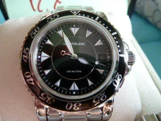 El reloj es un Montblanc sport de cuarzo modelo de caballero resistente a 200mtrs,cristal de zafiro,armis(con una calidad altisima),corona roscada y con el caracteristico logotipo Montblanc.
