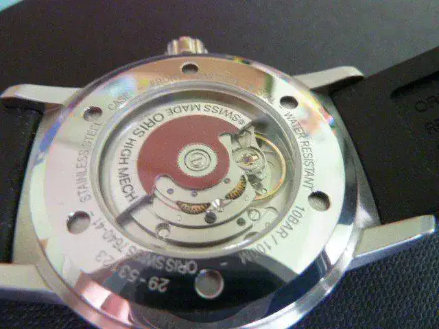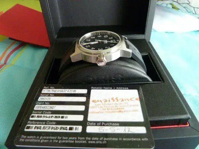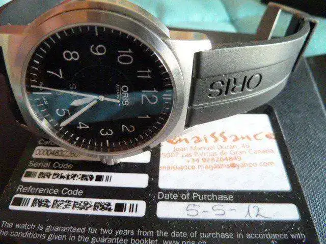 El reloj va con su caucho original Oris en buen estado,su caja externa,interna,tarjeta garantia sellada(aun le queda un año de garantia casi)y libreto con la historia de Oris.