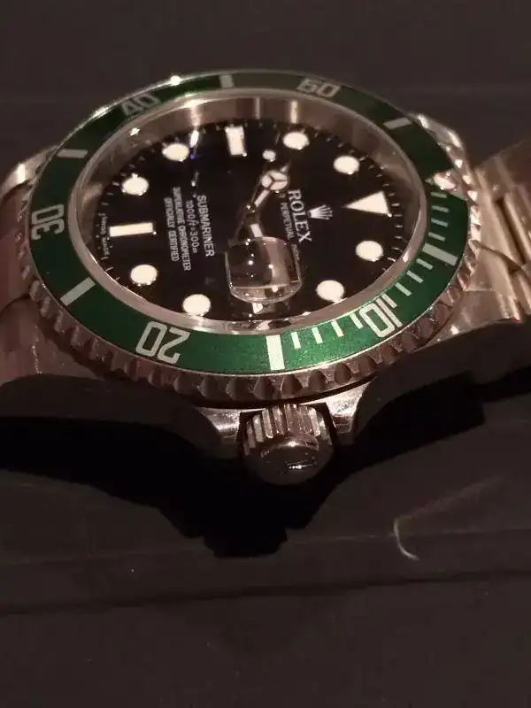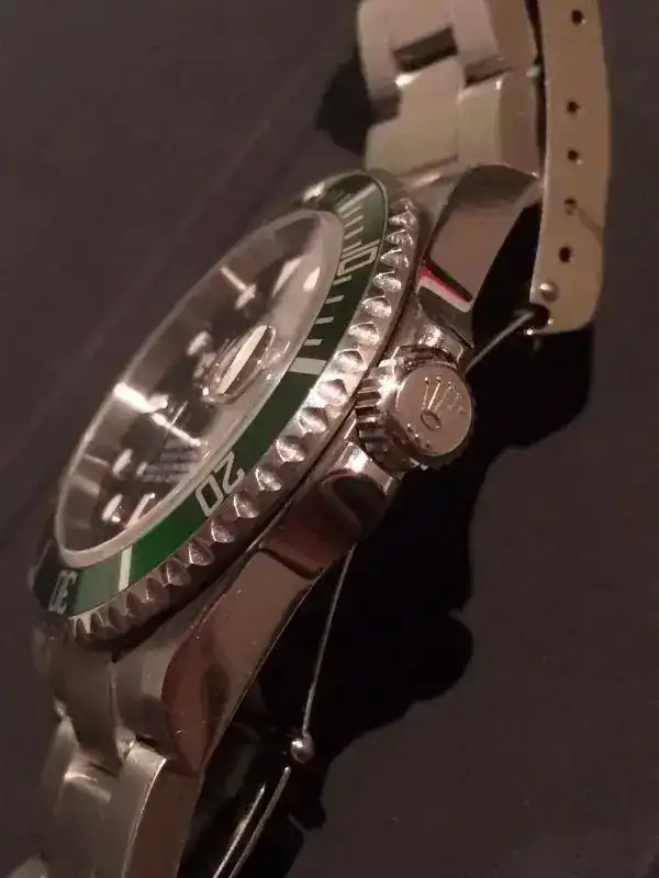 Corona de Rolex queda perfectamente alineada. Como sabeis no todos lo hacen y en este caso queda perfectamente alineada con la caja. Es un detalle curioso y que como lo tiene lo comento. Ver foto.