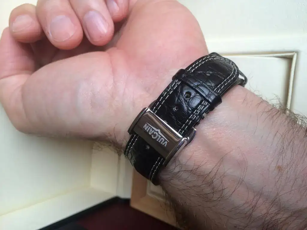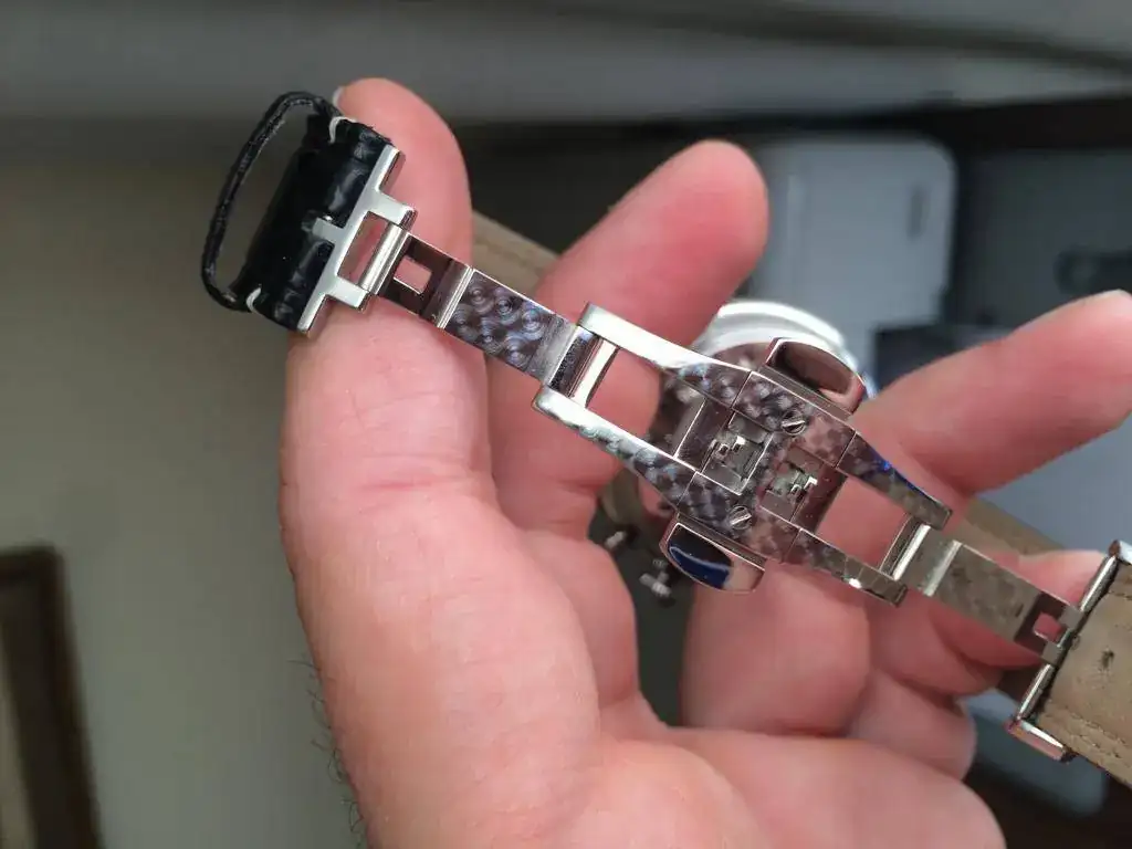 Quiero destacar tambien el acabado guilloche de la esfera que junto a los indices aplicados, el brazalete de aligator de Luisiana con doble costura y el deplegable con acabado perlage, le confieren una imagen espectacular.