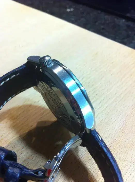 El estado es bueno y la marcha también, salvando marcas lògicas de uso moderado, poco apreciables y microrayas en el armis de acero. El reloj nunca ha sido pulido. Algo descolorida la punta de aguja secundera. En las fotos se puede apreciar creo bastante bien el estado del reloj, aunque no son de gran calidad como las de algunos compañeros del foro que cuelgan fotos increibles.