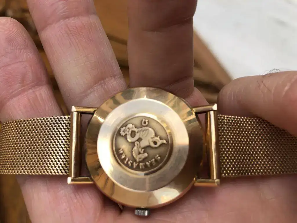 Vendo este Omega Seamaster de los años 70. De movimiento automático, es de oro de 18 K, tanto en caja como brazalete, que es tipo milanesa.