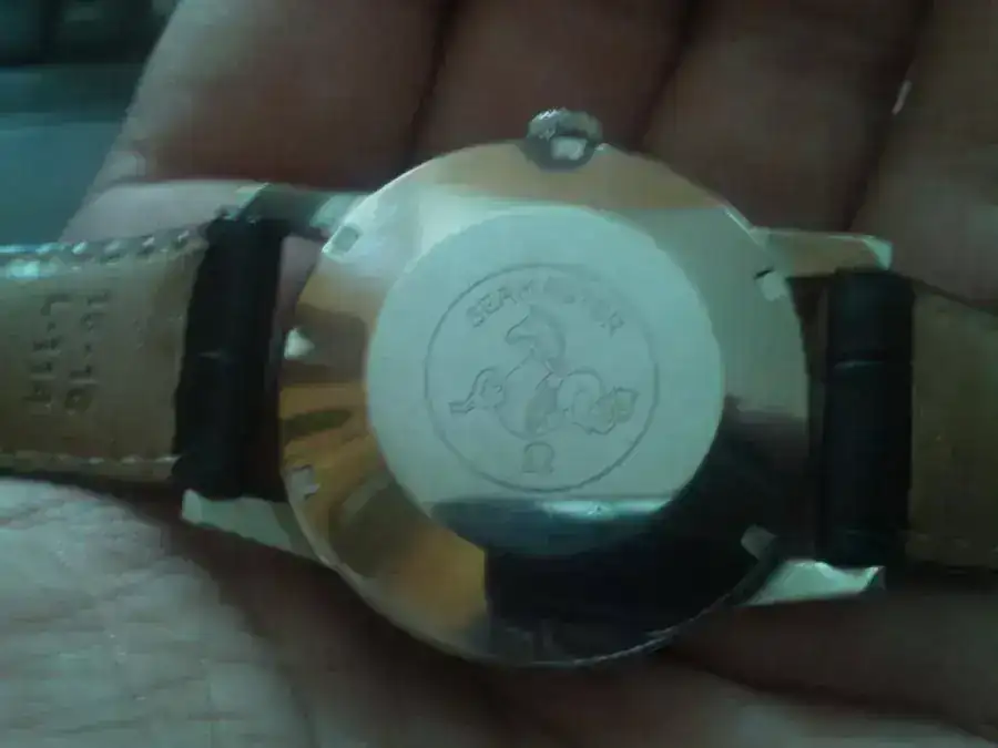Este modelo tiene caja de acero de 38 mm,corona incluida.Caja de acero roscada,con la marca del hipocampo y el "seamaster" en la tapa trasera.