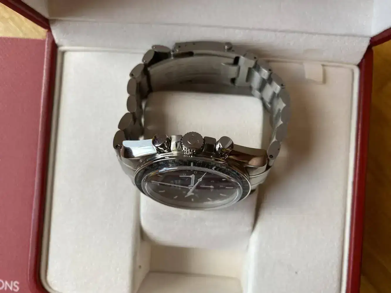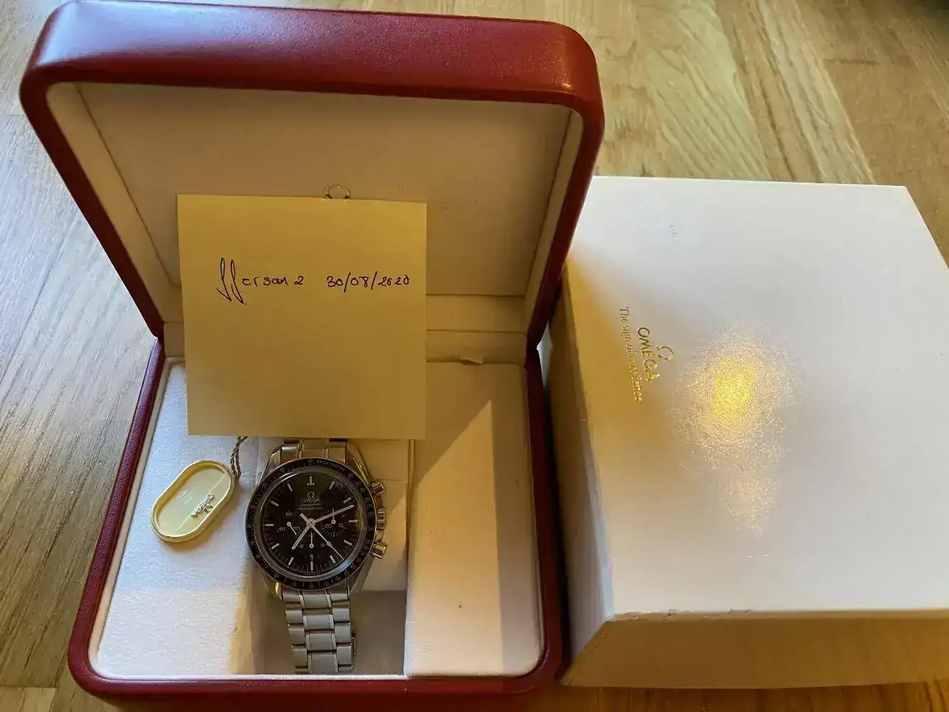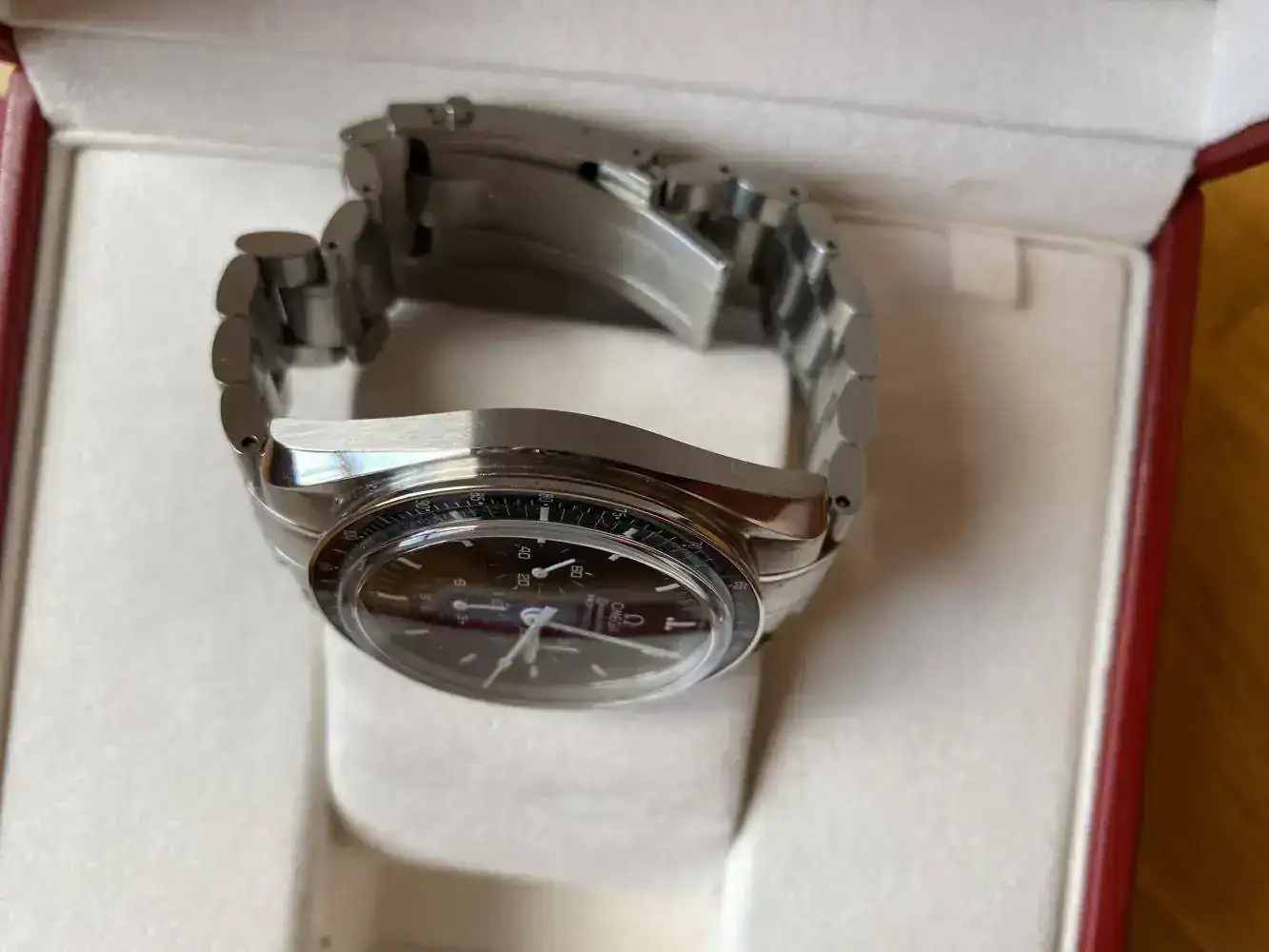 Pongo a la venta este precioso Speedmaster Professional Moonwatch Doble Zafiro comprado en 2015 justo antes de que saliera al mercado la nueva caja con accesorios. Está totalmente nuevo, solo lo he usado una vez y ha estado siempre guardado en su caja. Precio 3500 €,actualmente el nuevo con la nueva caja sale por 5500 €.