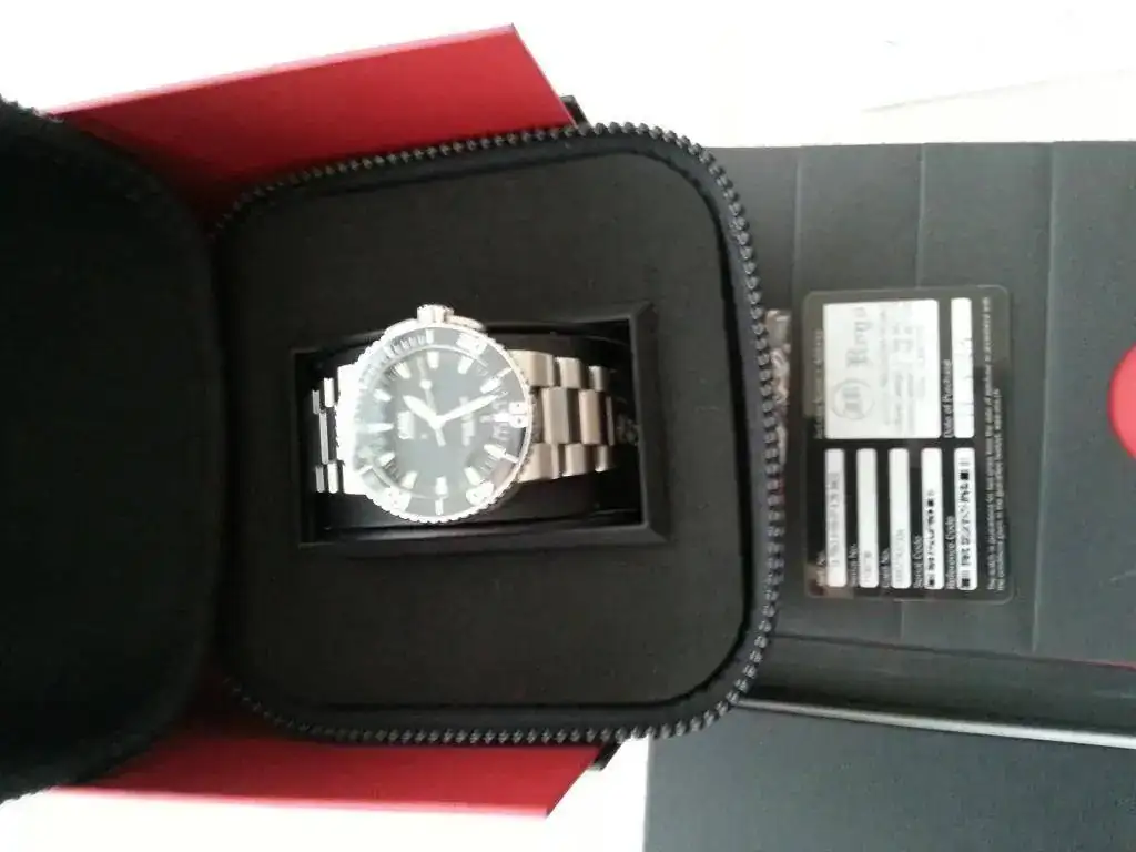 El reloj se compro el 17/01/2013 y esta registrado en My Oris, por lo que tiene ampliada la garantía hasta el 17/01/2016,esta cepillado completo por profesional ya que los brillos me parecían que no les sentaba bien, pero esto es algo que se puede restaurar si al que lo compre les gustan.