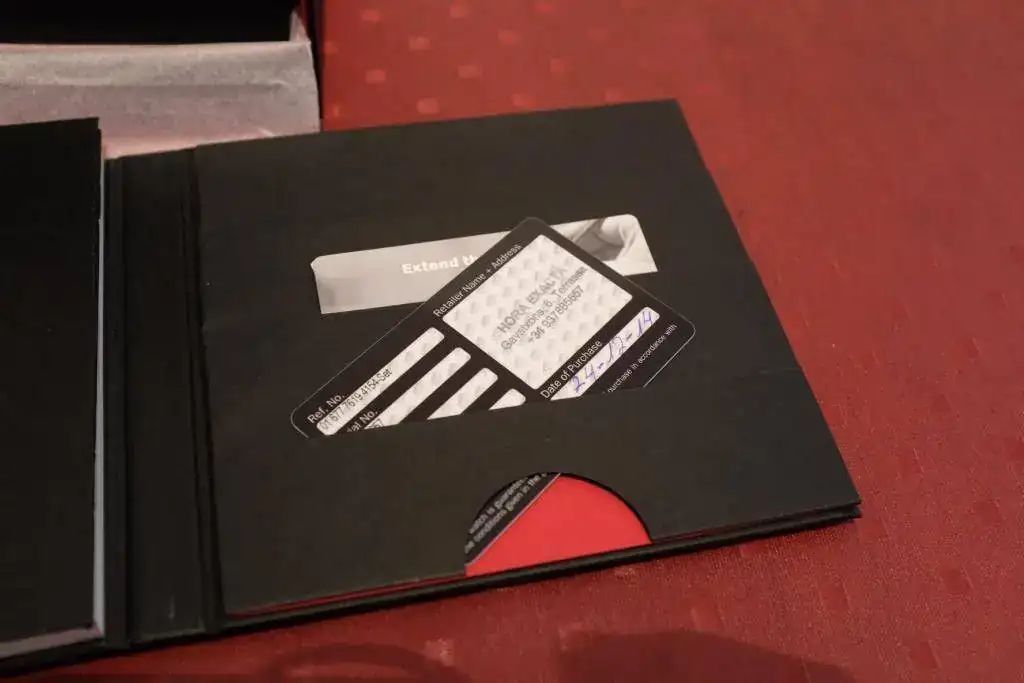 No viene con la caja de la edición limitada que incluye los guantes, el primer propietario la perdió. Se entrega con una caja Oris normal, manual de instrucciones y tarjeta de garantía sellada de CO español.