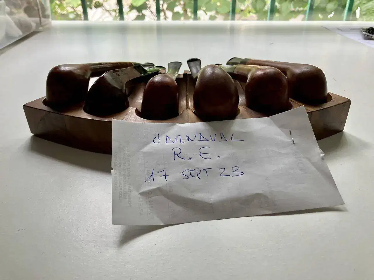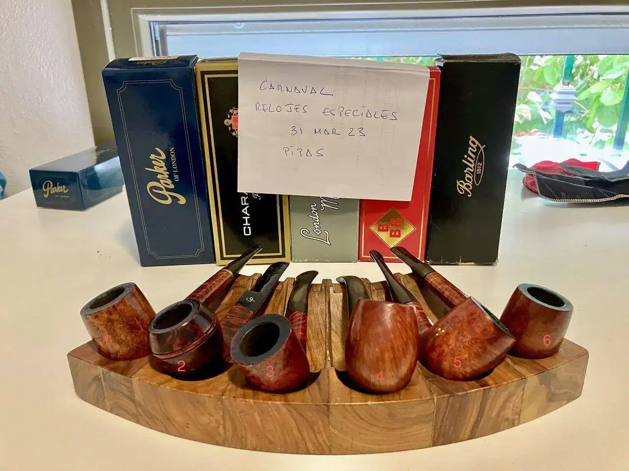 Vendo 6 pipas de madera de brezo de marcas conocidas. Las marcas son inglesas pero alguna de ellas, en el transcurso del tiempo, cambió el país donde las fabricaban y -al menos- alguna boquilla (Parker, Charatan) están hechas en Francia.