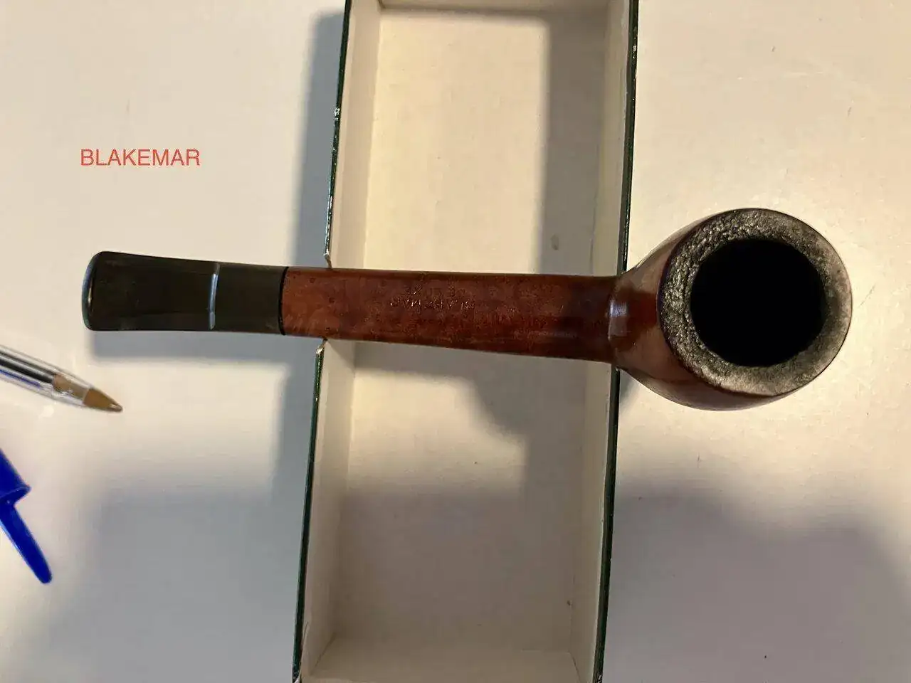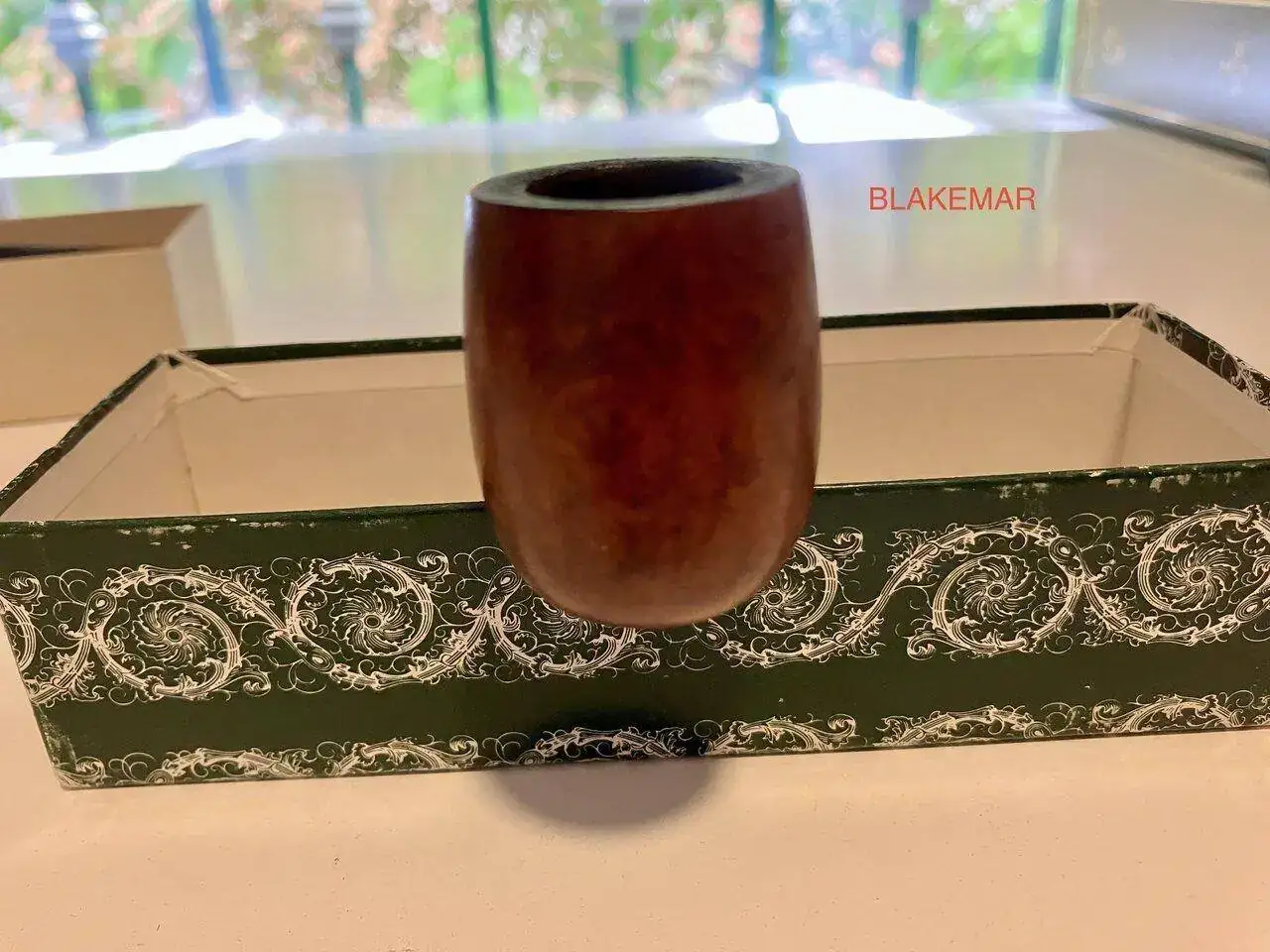 Las pipas están fotografiadas con sus cajas originales; excepto la BLAKEMAR de la que no he encontrado su caja original y que se vende sin caja (la caja sobre la que está apoyada corresponde a otra pipa que no está en venta).