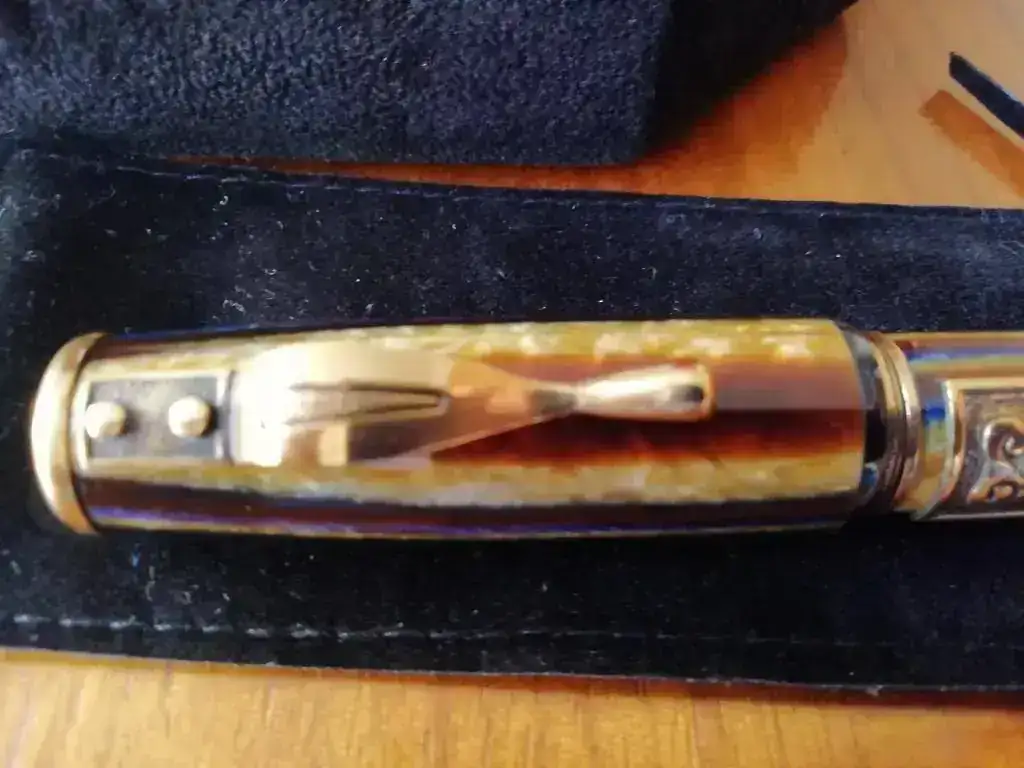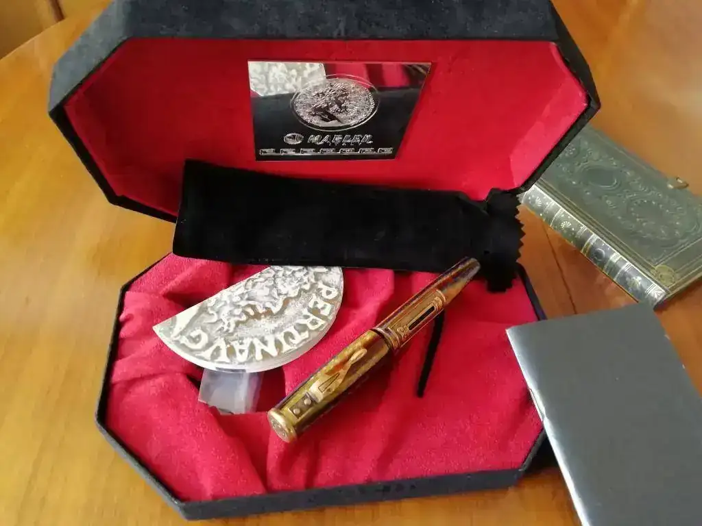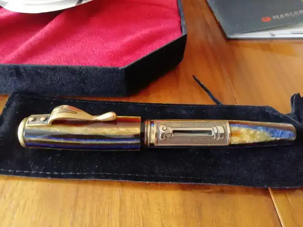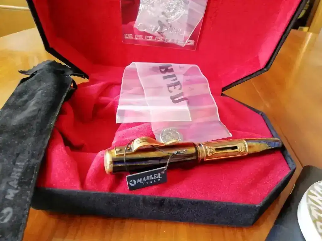 Pongo a la venta esta fantástica pluma Marlen Aureus. La pluma es nueva, nunca ha sido usada, cargada ni siquiera mojada en tinta. Ha estado en su caja desde que me llegó del vendedor.