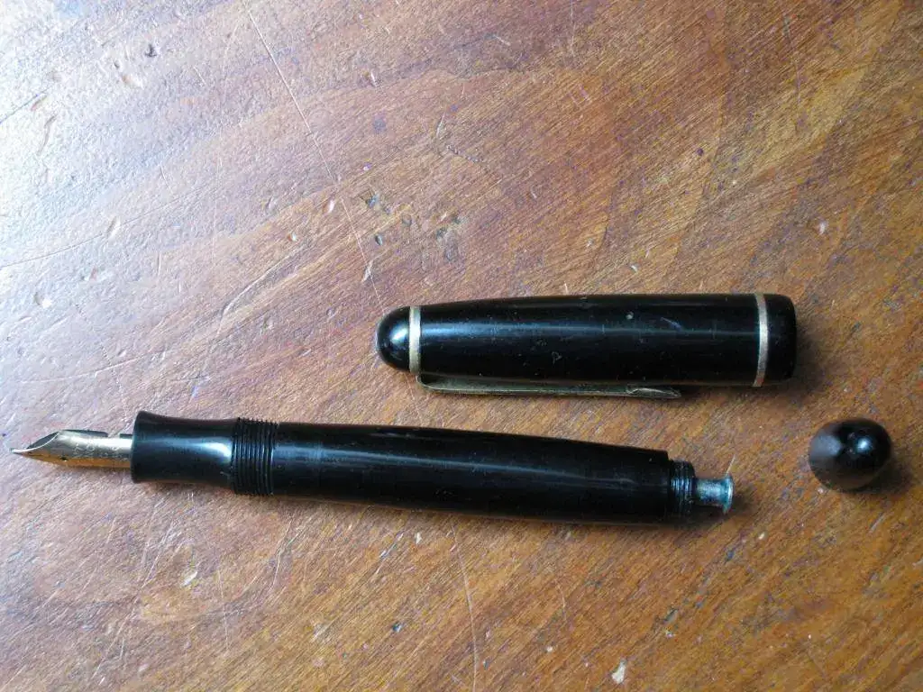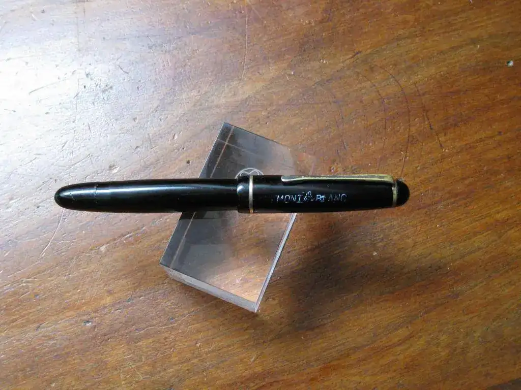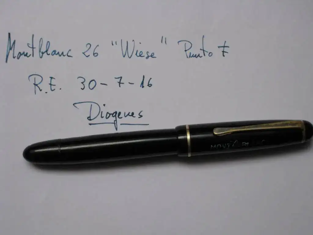 Vendo esta Montblanc 26, de la serie de las Montblanc fabricadas en Barcelona por la casa Wiese. Es un modelo raro, porque la mayoría de las 26 fueron hechas en color gris rayado. Esta fabricada en plástico inyectado y es de los años 50. Carga por botón (sistema que ya había dejado de utilizar Montblanc en Alemania) y lleva un plumín de 14K F.