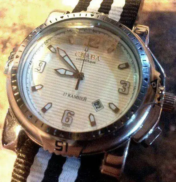 Es un reloj de la marca CJIABA( eslava,en carácteres cirílicos).