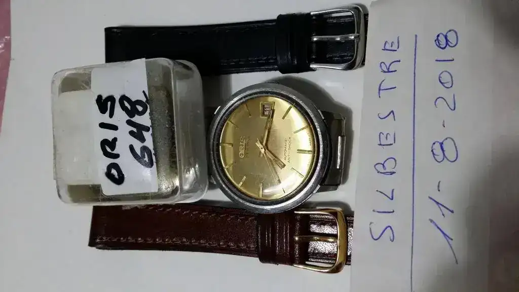 Vendo raro reloj Oris vintage, con el no menos raro movimiento aut 648. con armis original, y con movimiento donante, y dos correas. muy bonito aunque las fotos no dan fe. Pero no las se hacer mejor.