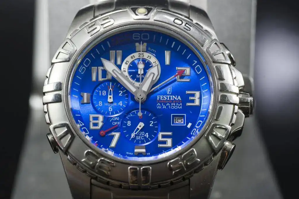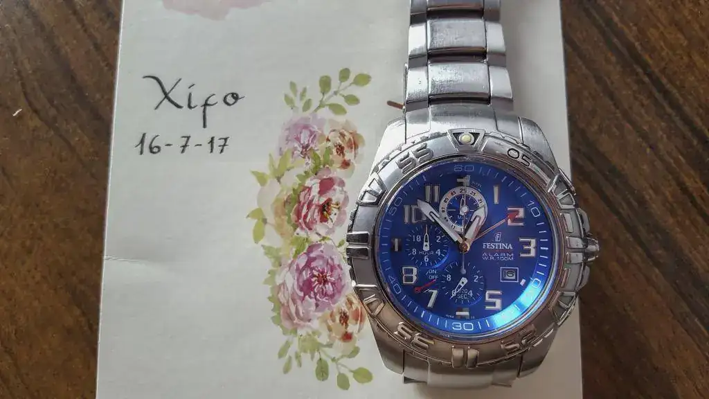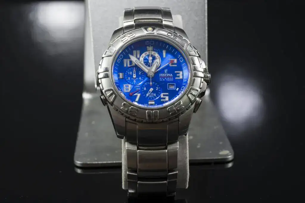 Pongo a la venta este reloj Festina cronografo, por falta de uso. La caja de acero inoxidable tiene un acabado cepillado.