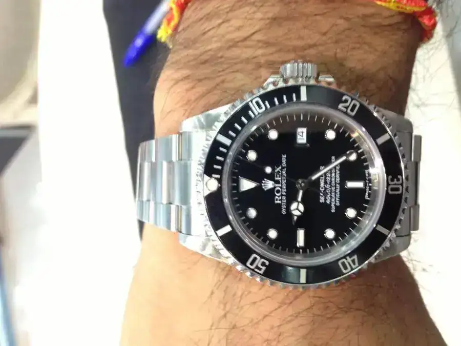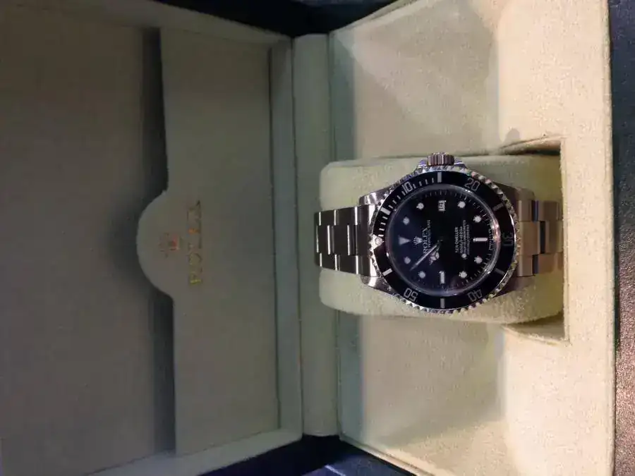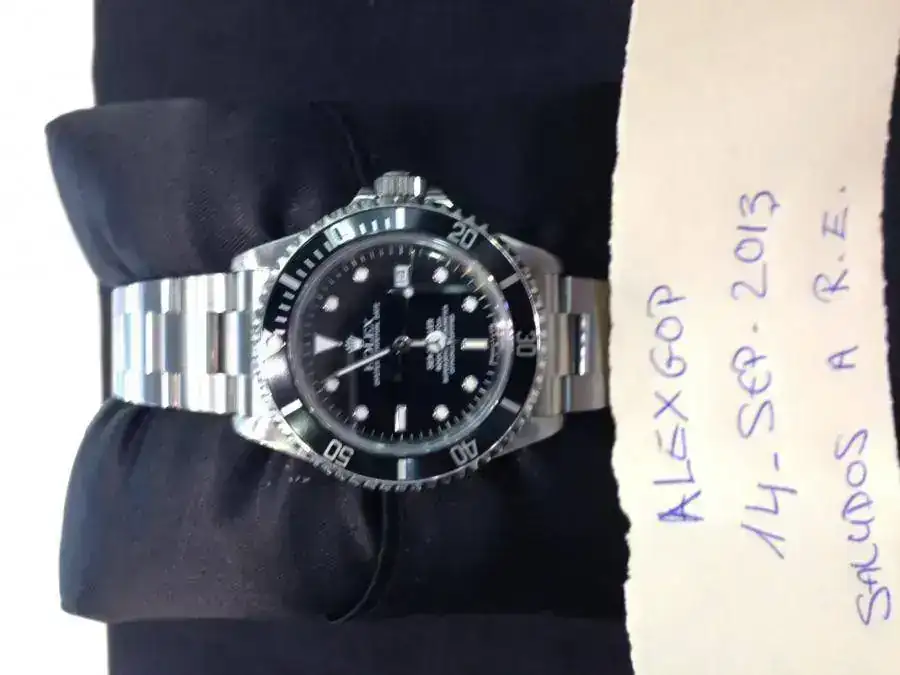 Lo compre en una reconocida tienda de compra-venta en Marbella hace dos meses. Tiene dos puestas por mi parte y el reloj me lo entregaron con la revisión y pulido hecho. Le queda diez meses de garantía de la tienda. Las fotos son de mi móvil pero no me importa enviar fotos extra a la persona que me lo pida.
