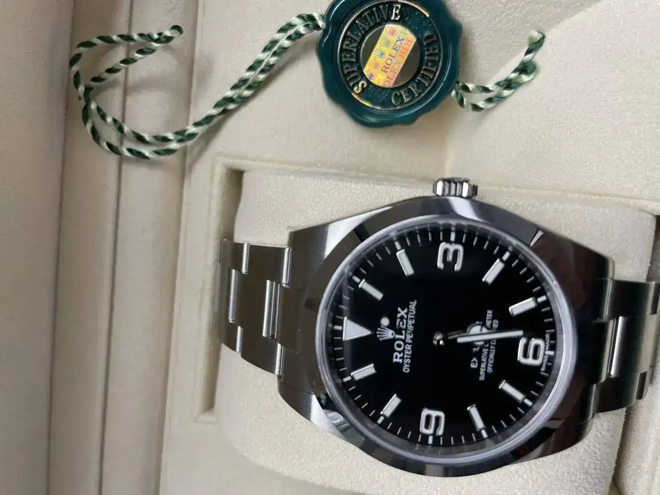 Reloj, Explorer I de 39 mm modelo 214270. Como pone la ficha está comprado en 2018 en CO nacional, aunque ya ha cumplido los dos años. Está sin usar, de hecho, aún tiene los famosos “plastiquitos”, por eso el sobreprecio de un euro que estoy incluyendo en su valor y por favor abstenerse de preguntar si se venden por separado ….. 😉