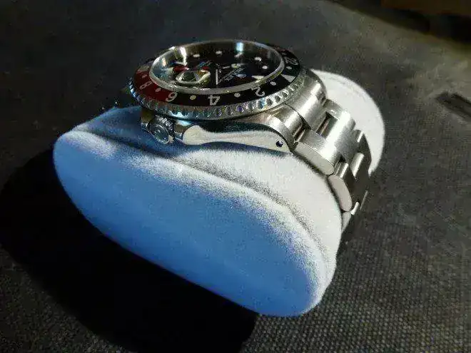 El estado del mismo es bueno; presenta numerosos pelillos en el armis y la zona lateral pulida de la caja (aquí también tiene una especia de "mancha, minúscula, cuyo origen desconozco (?); el bisel está prácticamente impoluto (aunque con la lupa le he encontrado uno o dos pelillos, y un ligerísimo toque en el aluminio del bisel, a la altura de la 1 GMT, inapreciable en las imágenes; el armis no presenta holgura ninguna; en parámetros COSC (pese a sus años, ha estado muy poco tiempo en marcha).